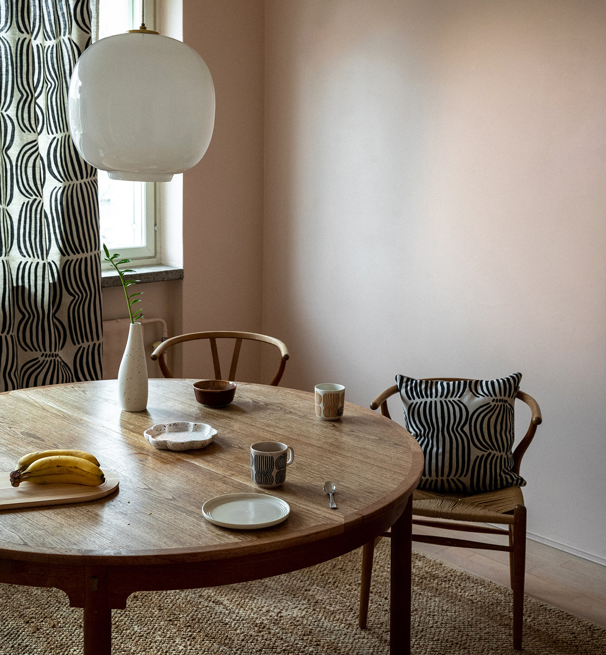 Vilja-kuosi vie ajatukset alkusyksyn tuulessa huojuville kullanhohtoisille viljapelloille. Se tarjoaakin samanlaista ajattomuutta ja rauhaa kuin pilvenhattaroiden liike aurinkoisessa elokuun iltapäivässä. Yhdistele Viljaan raikasta valkoista, puuta ja muita luonnonmateriaaleja. Tässä keittiössä näkyvät hyvän elämän ainekset.