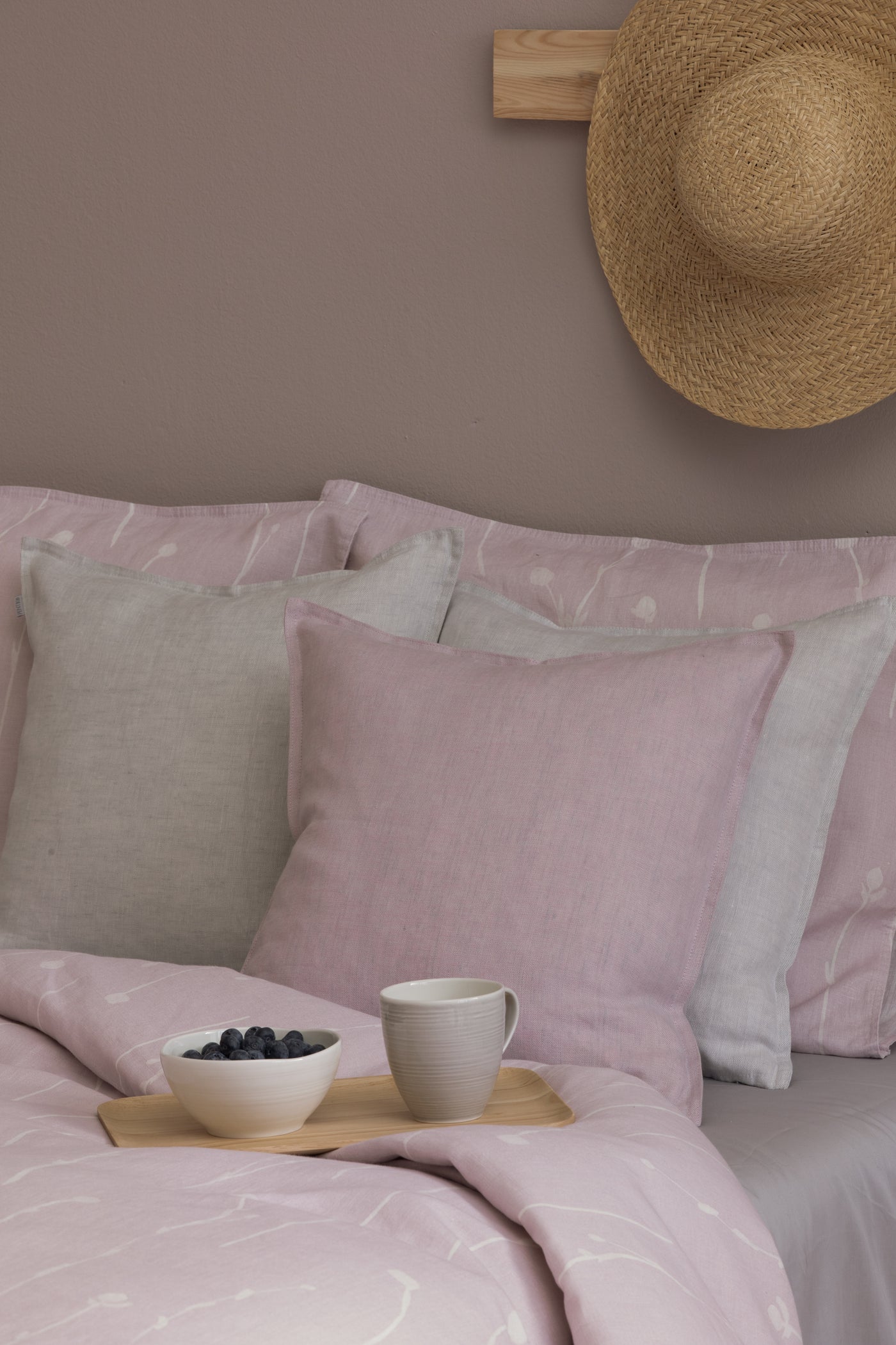 Pehmeäksi käsiteltyä, luonnollista pellavaa ja hillityn romanttista vaaleanpunaista. Näihin lakanoihin on ihana sukeltaa päivän päätteeksi. Pinkit Ilta-vuodevaatteet muodostavat upean väriparin harmaiden sävyjen kanssa.