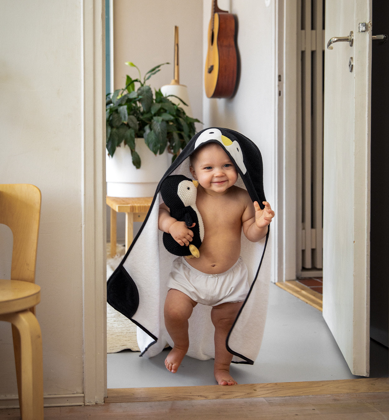 Pienen ihmisen spa-hetken kruunaavat hauskat hupulliset pyyhkeet, johon kääriytyessään voi hetken olla vaikka velho. Tai näkymätön! Pehmeään huppupyyhkeeseen kääritty lämmin kapaloinen on turvassa. Ja unia vaille valmis.