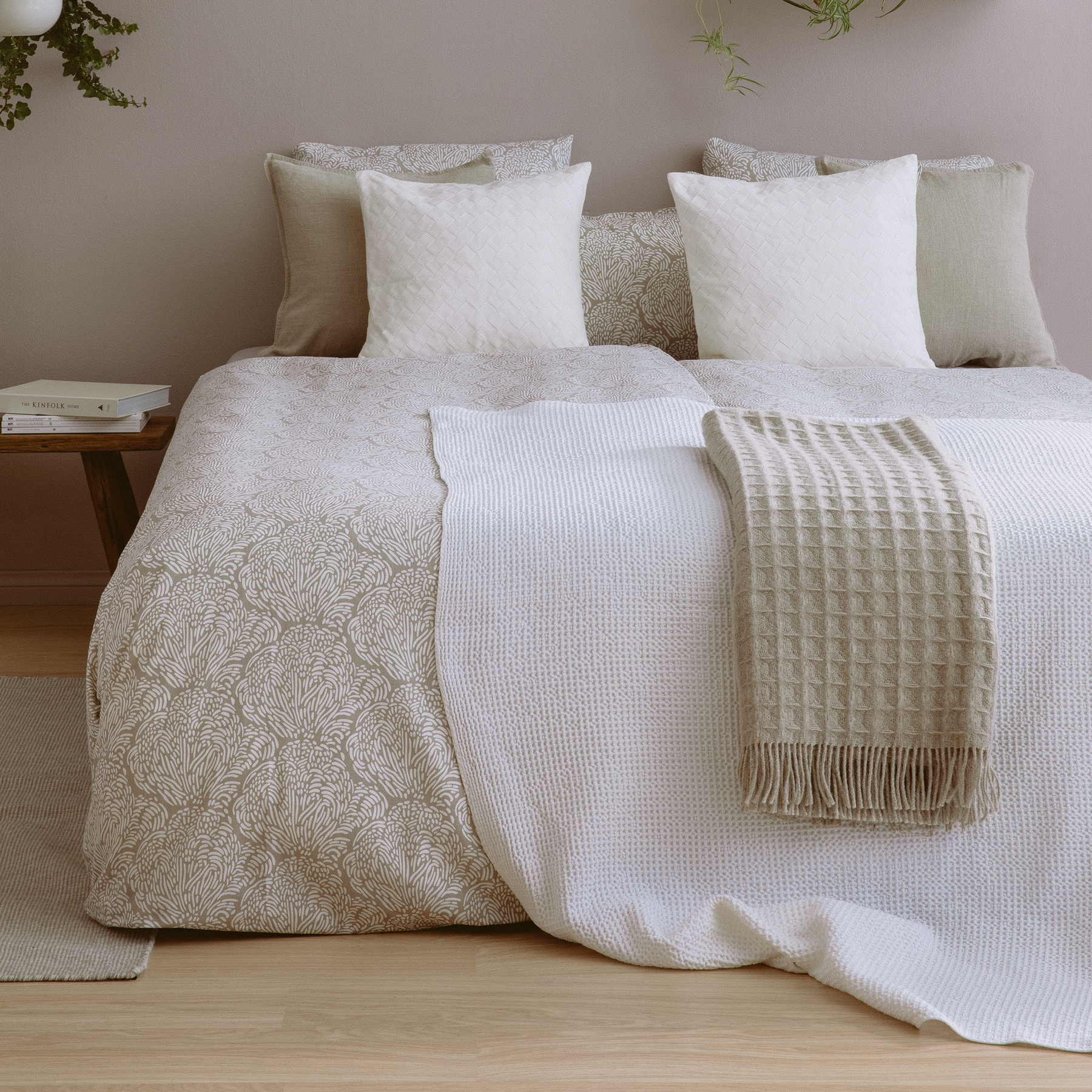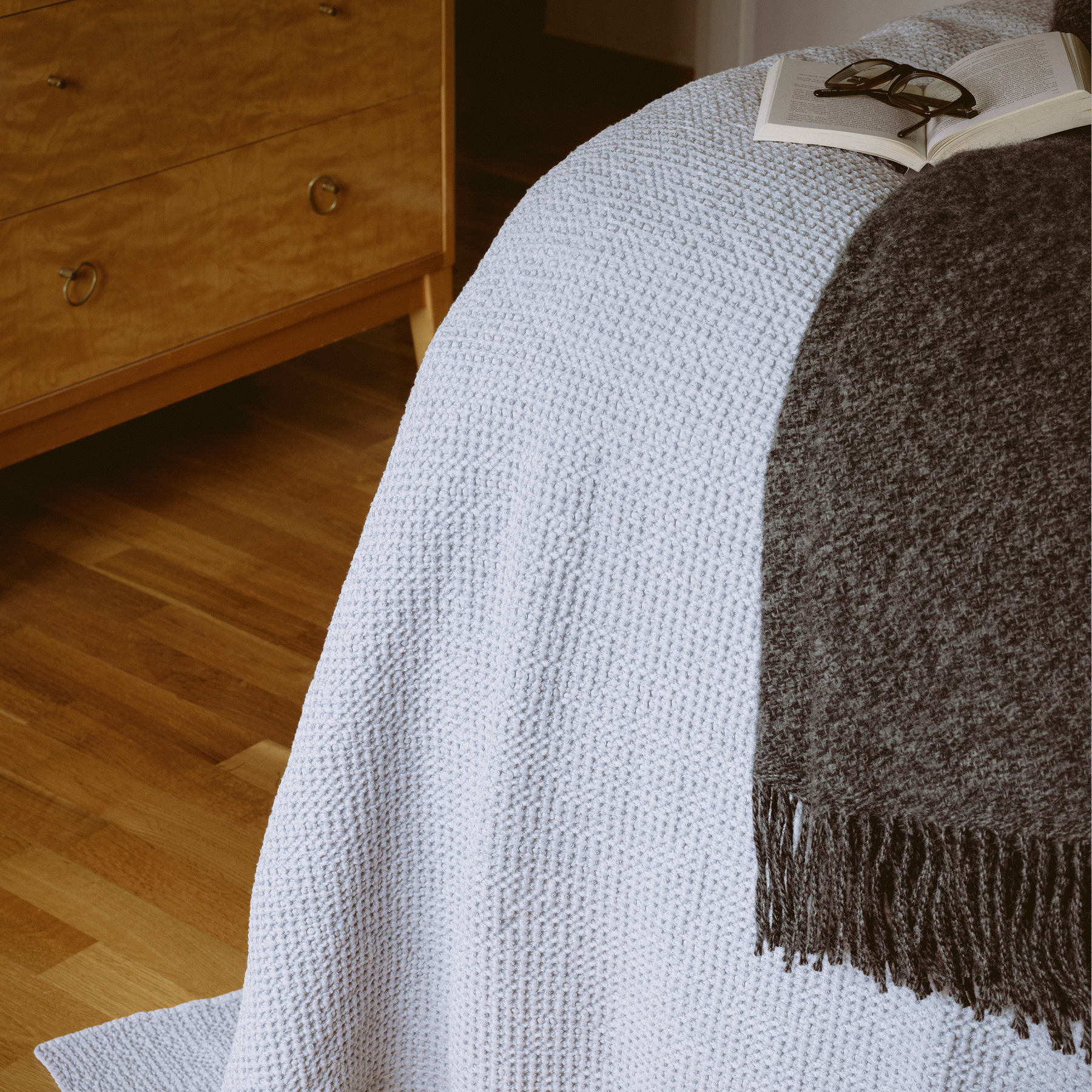 Valkoinen, 160x260 cm kokoinen Cameron-päiväpeitto sopii niin lasten kuin aikuisten sängyn päälle. Päiväpeittoa valmistetaan kolmessa eri koossa: 160x260 cm, 230x260 cm ja 270x260 cm. Peitteen materiaali on 100 % puuvillaa. Konepesu varovaisella ohjelmalla 40 asteessa.