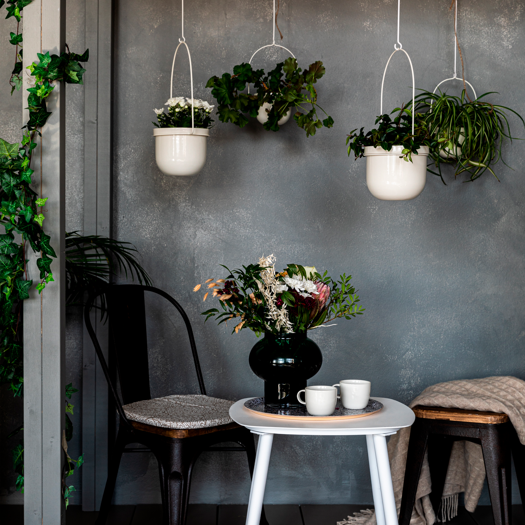 Elo-amppeliripustimella saa ripustettua Elo-ruukut kauniisti roikkumaan. Lasse Kovasen suunnittelemissa Elo-ruukuissa on pehmeä muoto ja ne ovat ihastuttavia sisustuselementtejä. Amppeliripustin on maalattua terästä. 18x20 cm amppeliripustin sopii pienemmälle 14x11 cm Elo-ruukulle.