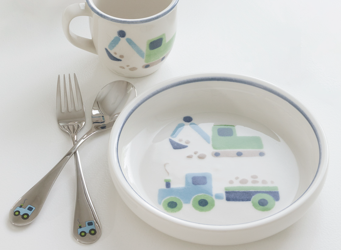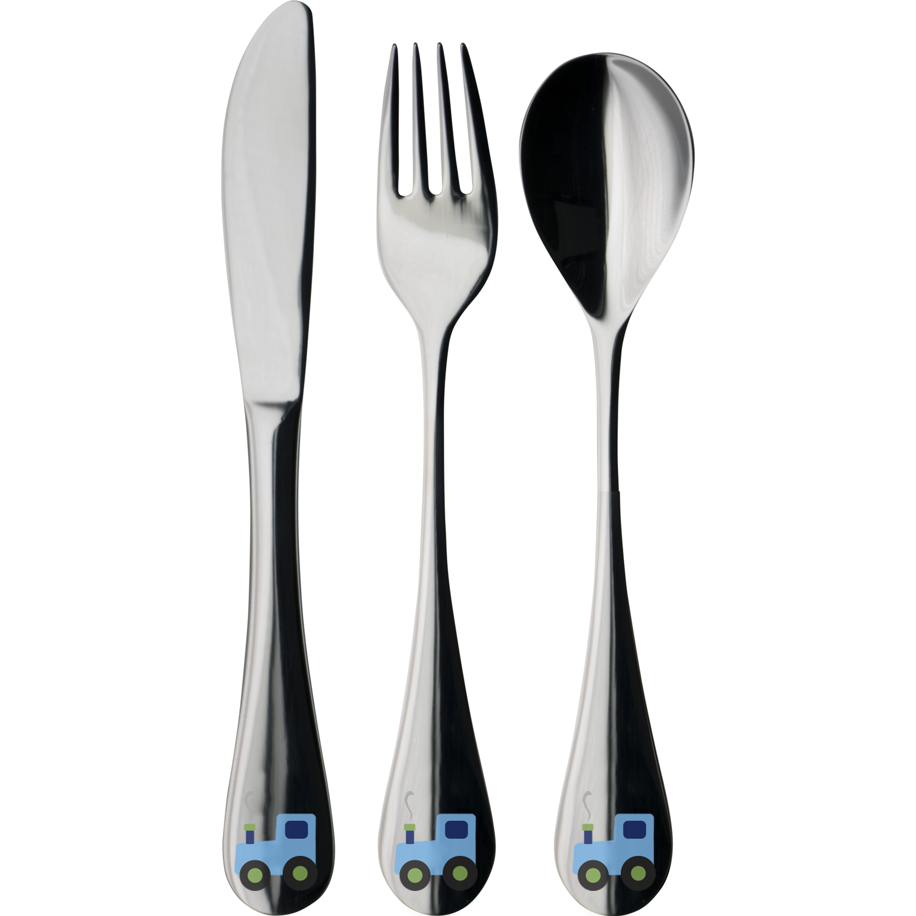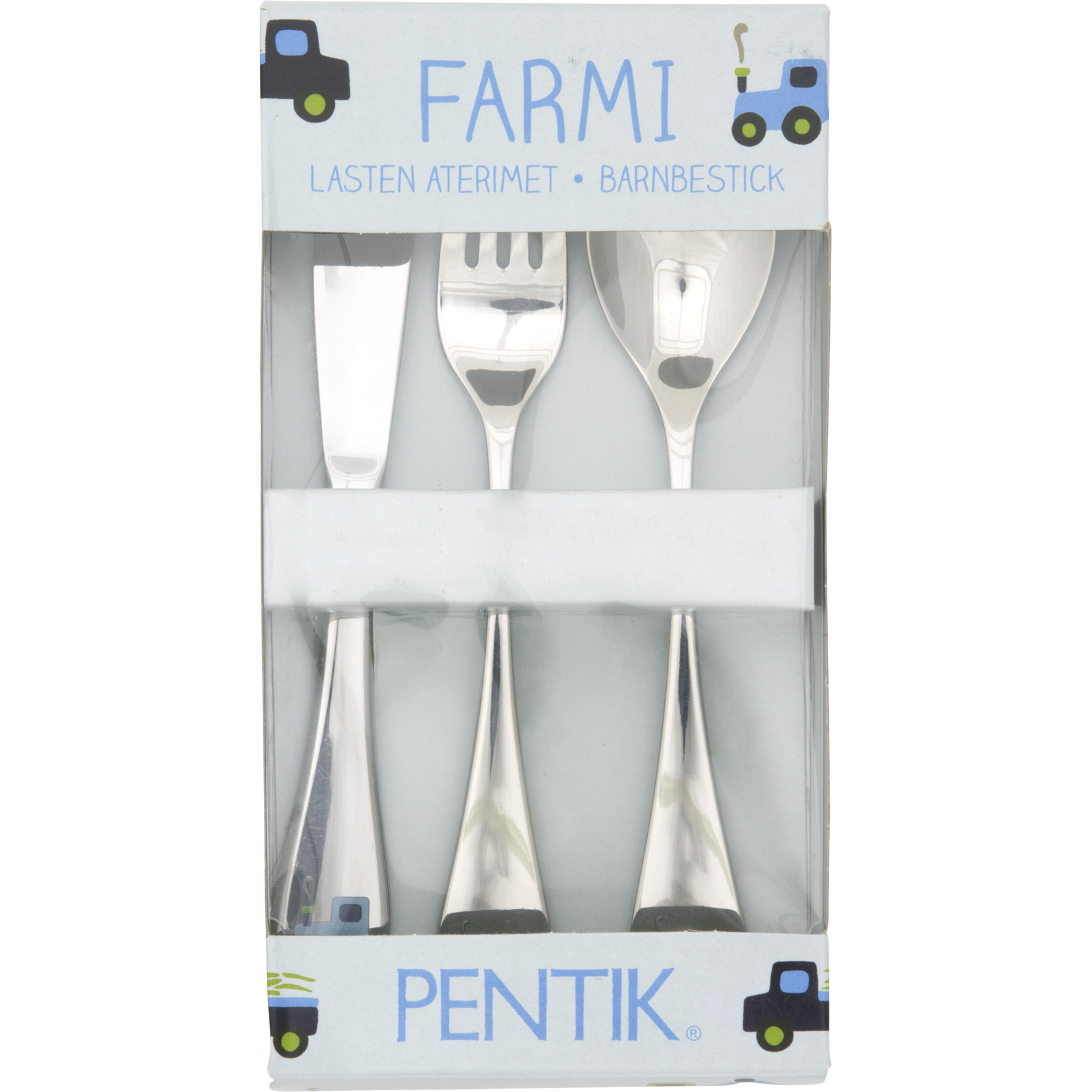 Minna Niskakankaan suunnittelema Farmi Traktori -sarja täydentyy lasten käteen sopivilla aterimilla. Pakkauksessa on mukana lusikka, haarukka ja veitsi. Lapset pysyvät ruokapöydässä paremmin paikallaan, mikäli kattaus on kohdillaan eikä kuvituksiin kyllästy! Ruostumattomasta teräksestä valmistetut aterimet voi pestä koneessa.