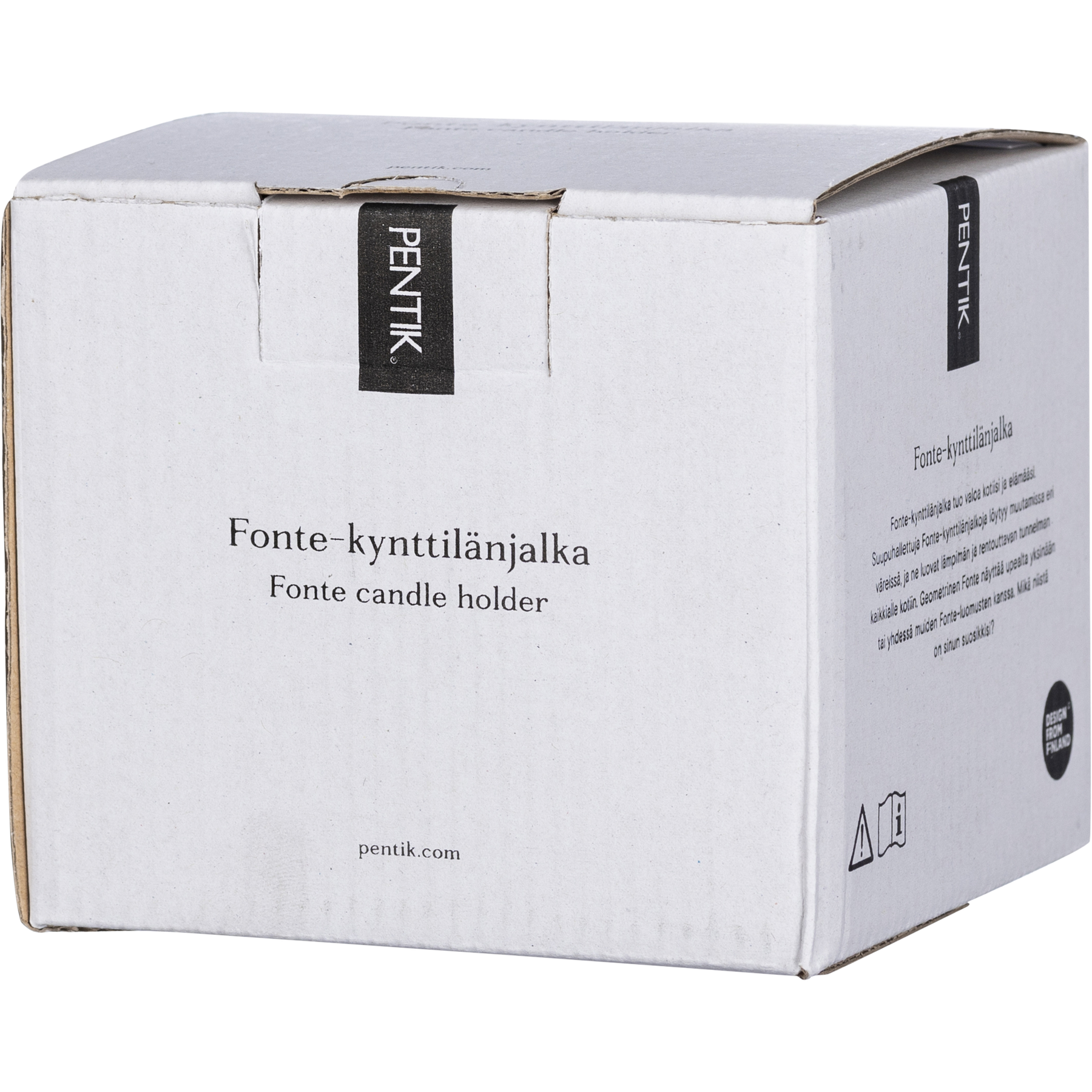 Minna Niskakankaan suunnitteleman Fonte-kynttilänjalan muotokieli on kauniin geometrinen. Kirkas Fonte-kynttilänjalka on näyttävä sisustuselementti, joka pääsee oikeuksiinsa kynttilän hehkussa. Kynttilänjalan koko on 10x9 cm ja se sopii tavalliselle kruunukynttilälle. Fonte-kynttilänjalka on hieman väljä vekatuille kruunukynttilöillemme, mutta tällöin kynttilän kannan ympärille voi kietoa tueksi esimerkiksi foliota.