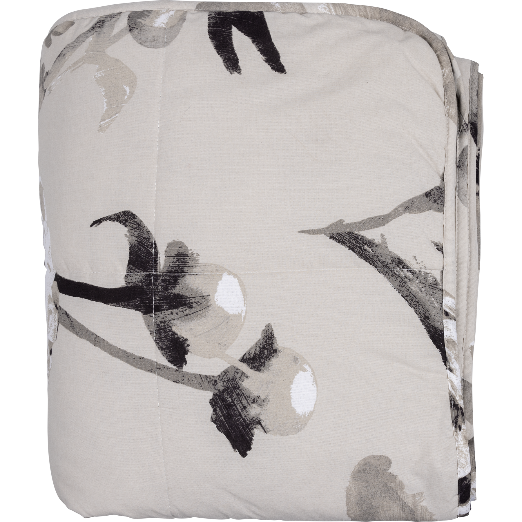 Beige päiväpeitto on kooltaan 270x260 cm. 100 % puuvillaa, täyte 100 % polyesteria.