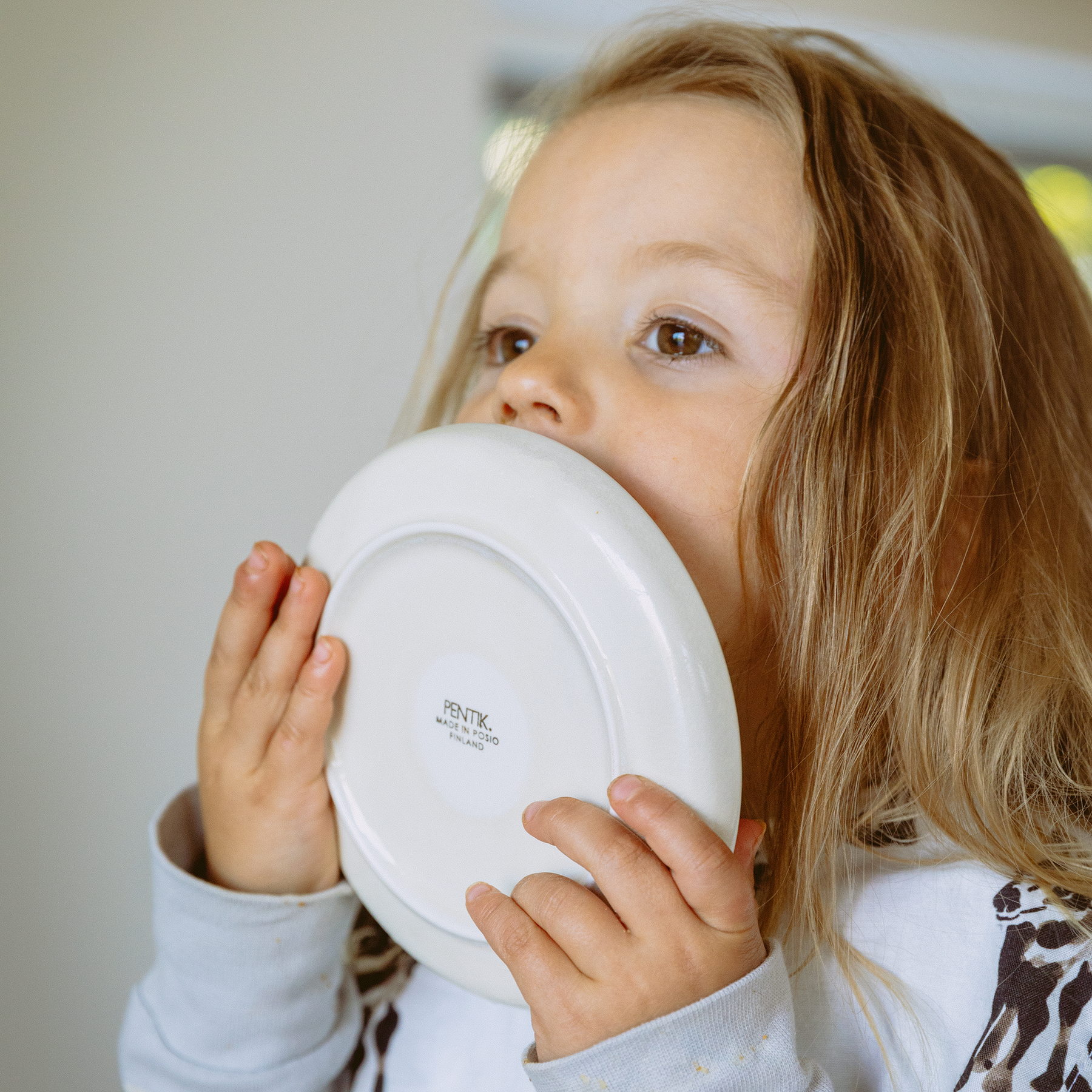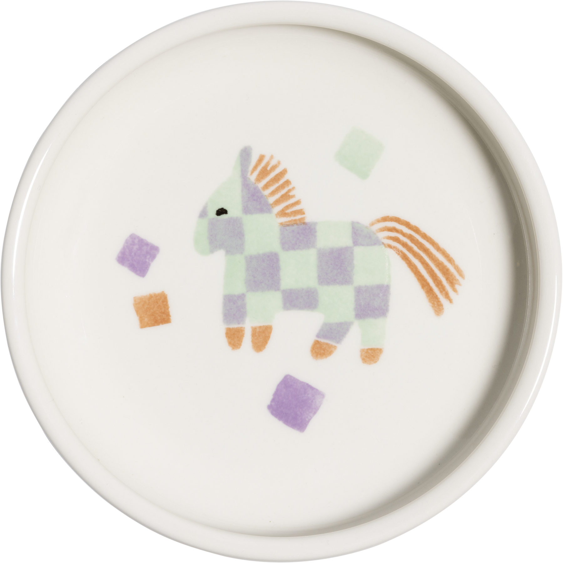Lasten elämä on täynnä valtavia tunteita. Hurjan jännittäviä hetkiä, räiskyvän suuria iloja sekä maata mullistavia suruja. Useimmiten kaikki yhdessä päivässä. Toisinaan energiaa on kuin villinä laukkaavalla varsalla. Aterioiden ajaksi malttaa kuitenkin rauhoittua paikoilleen, kun lautasen pohjalta paljastuu Minna Niskakankaan suunnittelema suloinen heppa-kuvitus. Keraaminen lasten lautanen on kestävä ja käytännöllinen aivan pienillekin, sillä järeästä kivitavarasta valmistettu korkeareunainen lautanen pysyy tukevasti pöydällä. Valmistettu Suomessa, Pentikin omalla keramiikkatehtaalla.