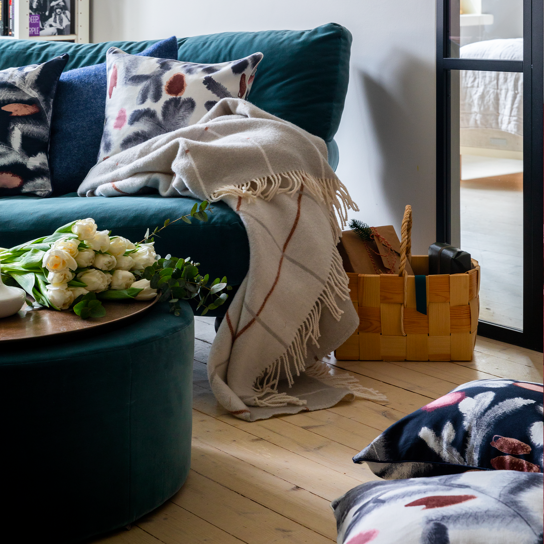 Minna Niskakankaan suunnittelema Huurre-kuosi on ylistys talvisen luonnon kauneudelle. Anna sen johdatella sinut pohjoisen taianomaiseen ja mystiseen metsään, missä lumikiteet kimaltelevat kuunvalossa. Viimeistele olohuoneen tai makuuhuoneen talvinen sisustus tummansinisellä Huurre-tyynynpäällisellä. Puuvillainen tyynynpäällinen on kooltaan 45x45 cm. Siihen sopii täydellisesti Pentikin 48x48 cm kokoinen sisätyyny, joka saa tyynyn näyttämään houkuttelevan muhkealta.