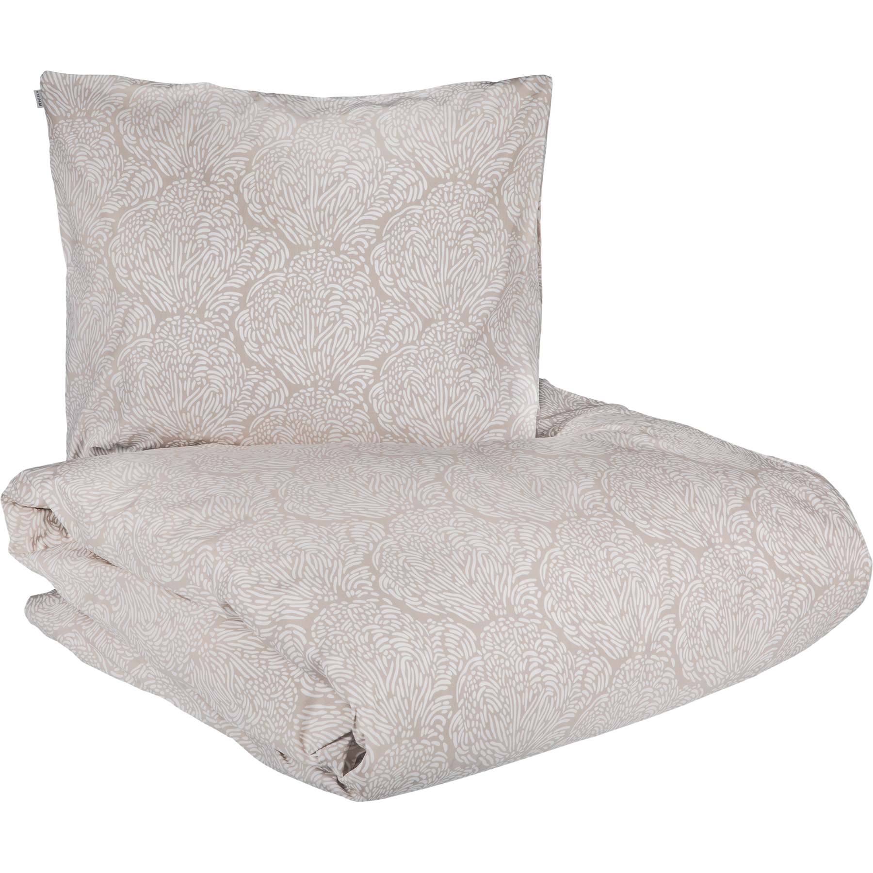 Jäkälä-pussilakanan koko on 150x210 cm ja pakkaus sisältää yhden 50x60 cm tyynyliinan. Vuodevaatteet ovat 100% puuvillaperkaalia ja ne voi pestä koneessa 60 asteessa. Puuvillaperkaali on vuodevaatteissa yleisimmin käytetty, tiheään kudottu, helppohoitoinen ja mattapintainen materiaali. Se tuntuu ihoa vasten ylelliseltä ja miellyttävältä, minkä vuoksi puuvillaperkaalilakanoita kutsutaan myös "hotellilakanoiksi". Tuotteen lankaluku eli kankaantiheys (TC) on TC205.