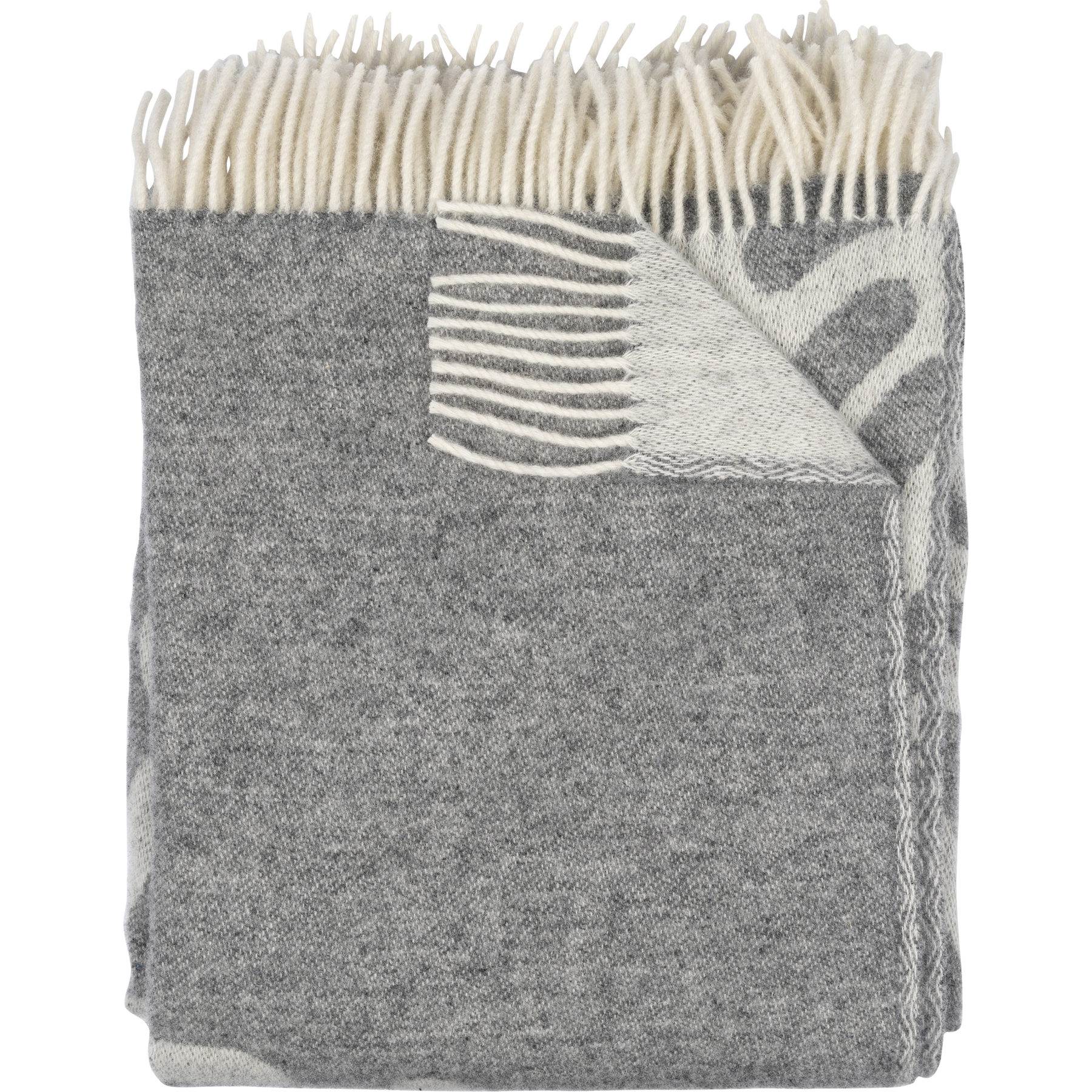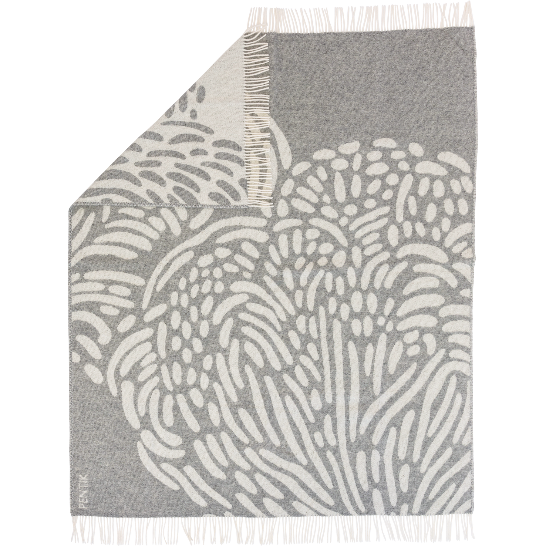 Villainen torkkupeitto on kooltaan 130x170 cm. Sen molempia puolia koristaa suurikokoinen, näyttävä Jäkälä-kuvio. Torkkupeiton toinen puoli on vaaleanharmaa ja toinen valkoinen. Valmistettu 100 % villasta, joten vesipesu kielletty.