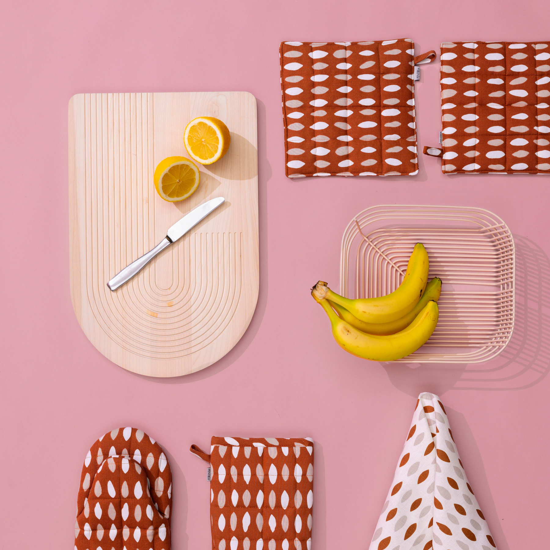 Jälki-leikkuulauta on valmistettu vaahterasta ja se on kooltaan 22,5x35 cm. Jälki-leikkuulauta sopii kauniisti yhteen Kaarna keittiötekstiilien kanssa.