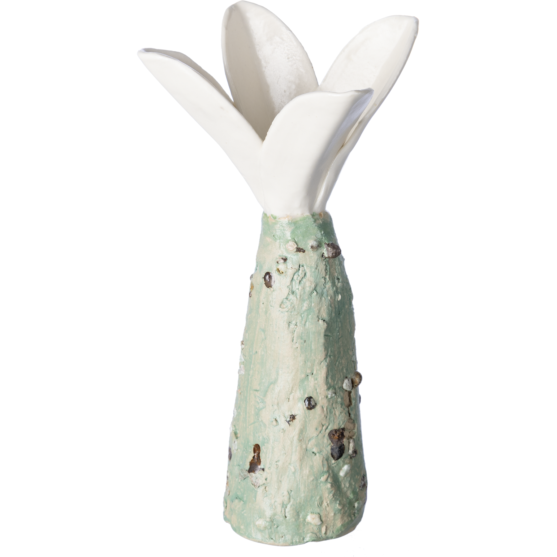 Valkoisen Joulutähti-keramiikkaveistoksen korkeus on 16 cm. Valmistettu käsin Suomessa, Posiolla.