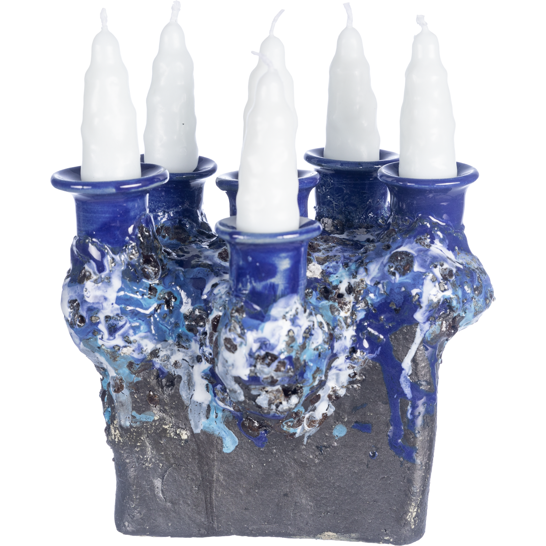 Siniseen Kaamoskivi-kynttelikköön mahtuu kuusi kynttilää. Suosittelemme vain tuotteeseen suunnitellun Kaamos-kynttilän käyttöä kynttilänjalassa, sillä sitä ei ole testattu muilla kynttilöillä ja näin ollen emme voi taata tuotteen turvallisuutta muita kynttilöitä poltettaessa. Koska tuote on käsin valmistettu ja näin ollen kynttilälle tarkoitetut reiät ovat uniikit, voi joissain tapauksissa kynttilä tarvita tuekseen foliota. Tuotteet ovat uniikkeja, joten niiden ulkonäkö voi vaihdella hieman kuvassa olevasta kappaleesta.