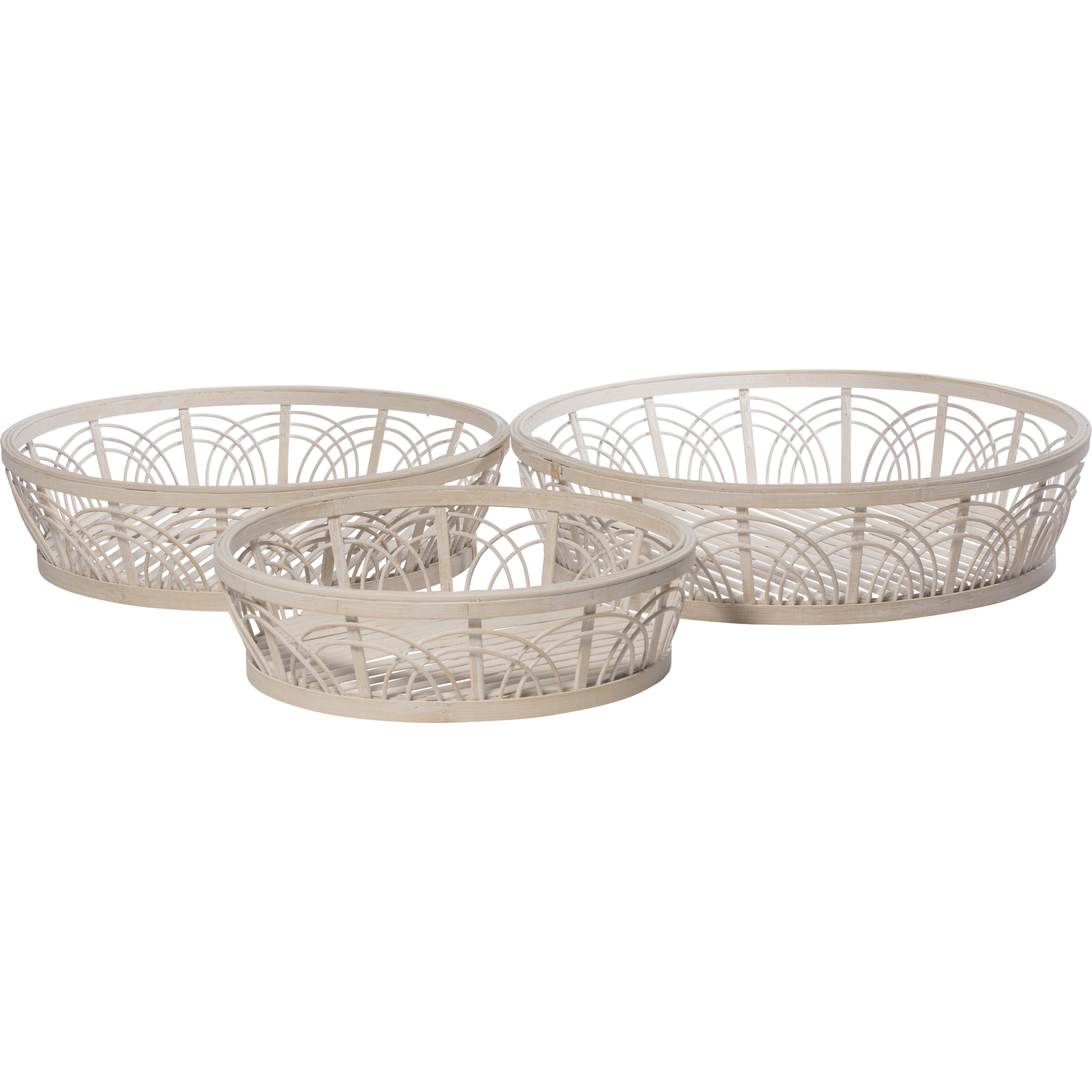 Rottinkiset Kaari-korit toimivat yksinkertaisen kauniina säilytysratkaisuina kodin jokaisessa tilassa. Kaari-koreilla sisustat luonnollisesti ja pidät irtotavarat järjestyksessä. Kaari-korisetti sisältää kolme eri kokoista koria, jotka sopivat monenlaiseen säilytykseen. Korien koot: 36x36x9 cm, 41x41x11 cm ja 46x46x12 cm.
