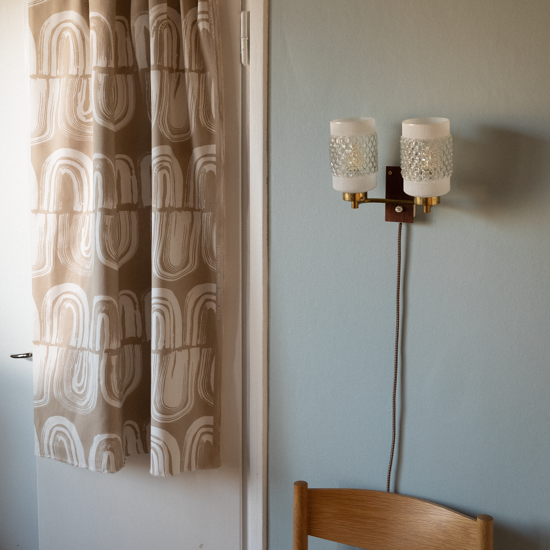 Kaarna-akryylipinnoitettu puuvillakangas on käytännöllinen valinta ruokapöytään, sillä se hylkii likaa ja on helppo pyyhkiä puhtaaksi. Kankaan leveys on 150 cm ja raporttikoko on 64 cm.