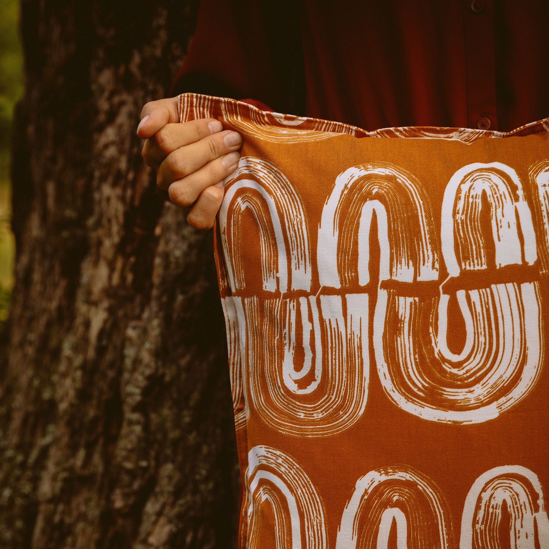 Tuulkoot kuinka kovasti tahansa, männyt seisovat tukevasti juurillaan, suojanaan kaunis kaarnansa. Kaarna-kuosimme muistuttaa siitä, kuinka tärkeää ihmisen on olla yhteydessä luontoon ja juuriinsa. Kaarnan luonnolliset, kaarevat muodot ja levolliset värit tuovat metsän rauhaa jokaiseen tilaan. Kuosisuunnittelija Saara Obele.