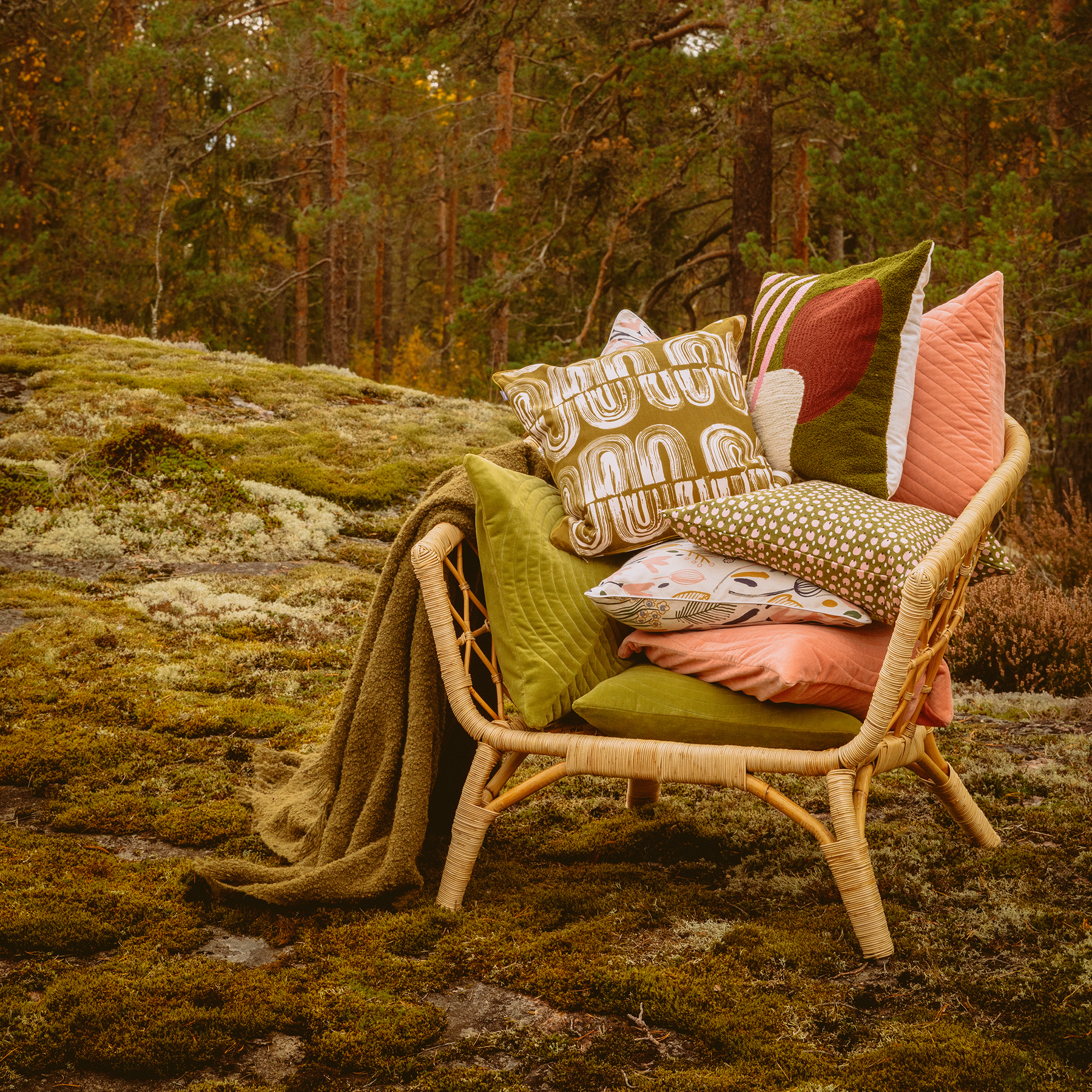 Puuvillaisen tyynynpäällisen koko on 45x45 cm. Siihen sopii täydellisesti Pentikin 48x48 cm kokoinen sisätyyny.