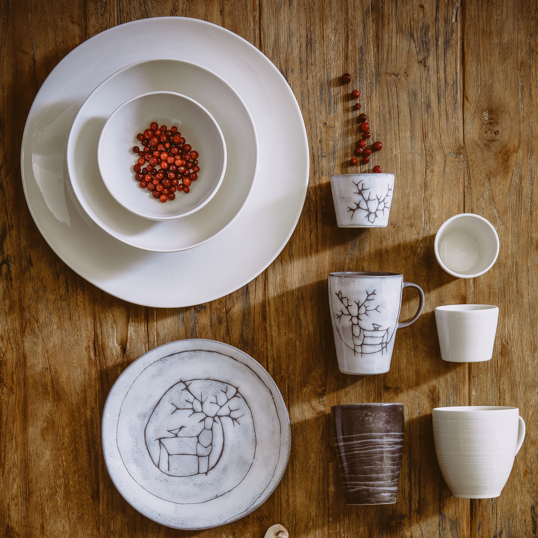 Ajanmuovaama järkähtämätön peruskallio on pohjoisen luonnon erikoisuus sekin. Anu Pentikin suunnitteleman Kallio-astiasarjan eläväinen pinta ja urat astioiden pinnalla syntyivät siirtojään sijaan muottien kaiverruksista. Valmistettu Posiolla, maailman pohjoisimmalla keramiikkatehtaalla.