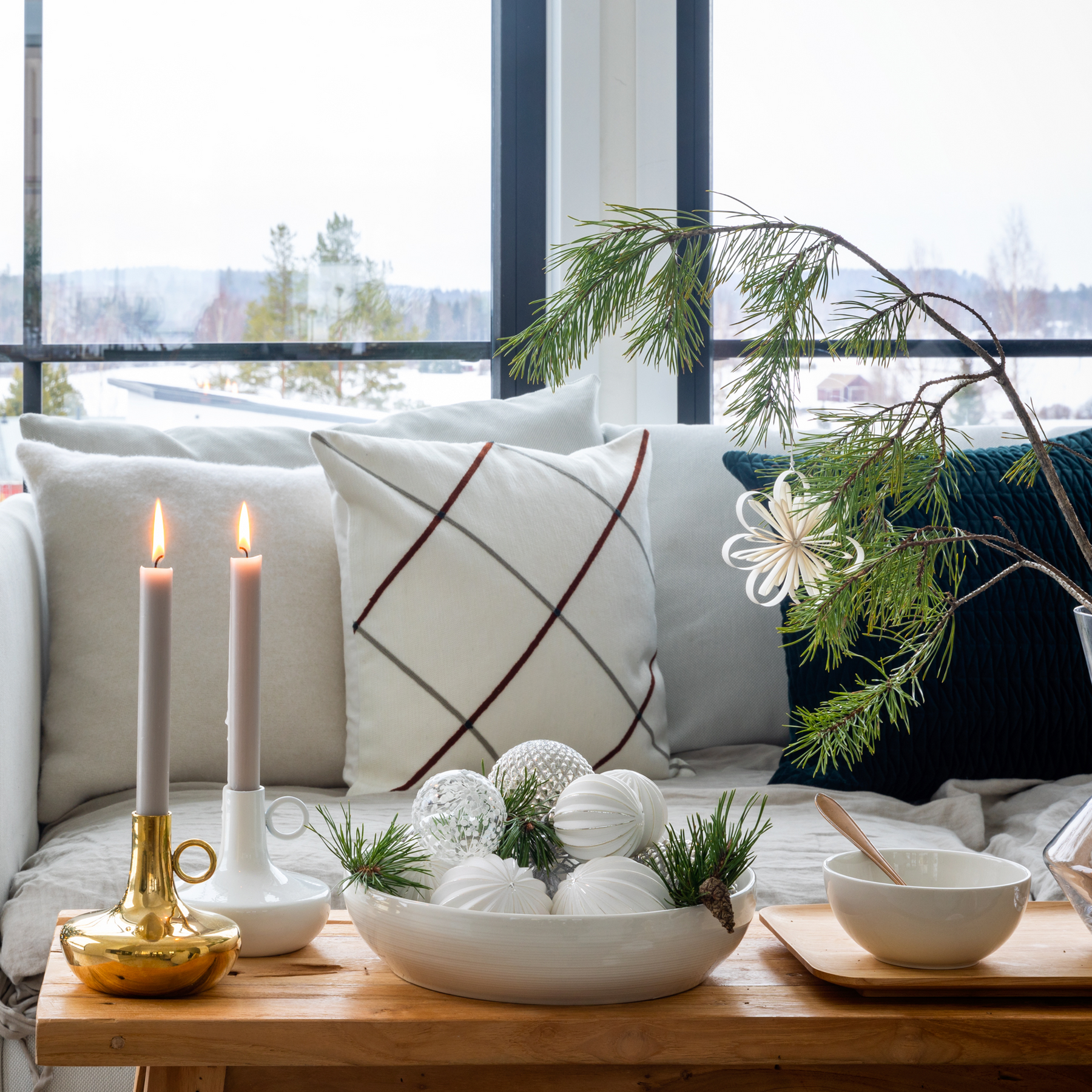 Brodeerattu Koto-tyynynpäällinen tuo kodin sisustukseen luonnollista, raikasta ilmettä. Tyylikkään pelkistetyn tyylinsä ansiosta Koto-tyynynpäällinen sopii moneen sisustukseen ja yhdisteltäväksi muiden sisustustekstiilien kanssa. Koto-tyynynpäällisen koko on 45x45 cm ja siihen sopii täydellisesti Pentikin 48x48 cm kokoinen sisätyyny, joka saa tyynyn näyttämään houkuttelevan muhkealta.