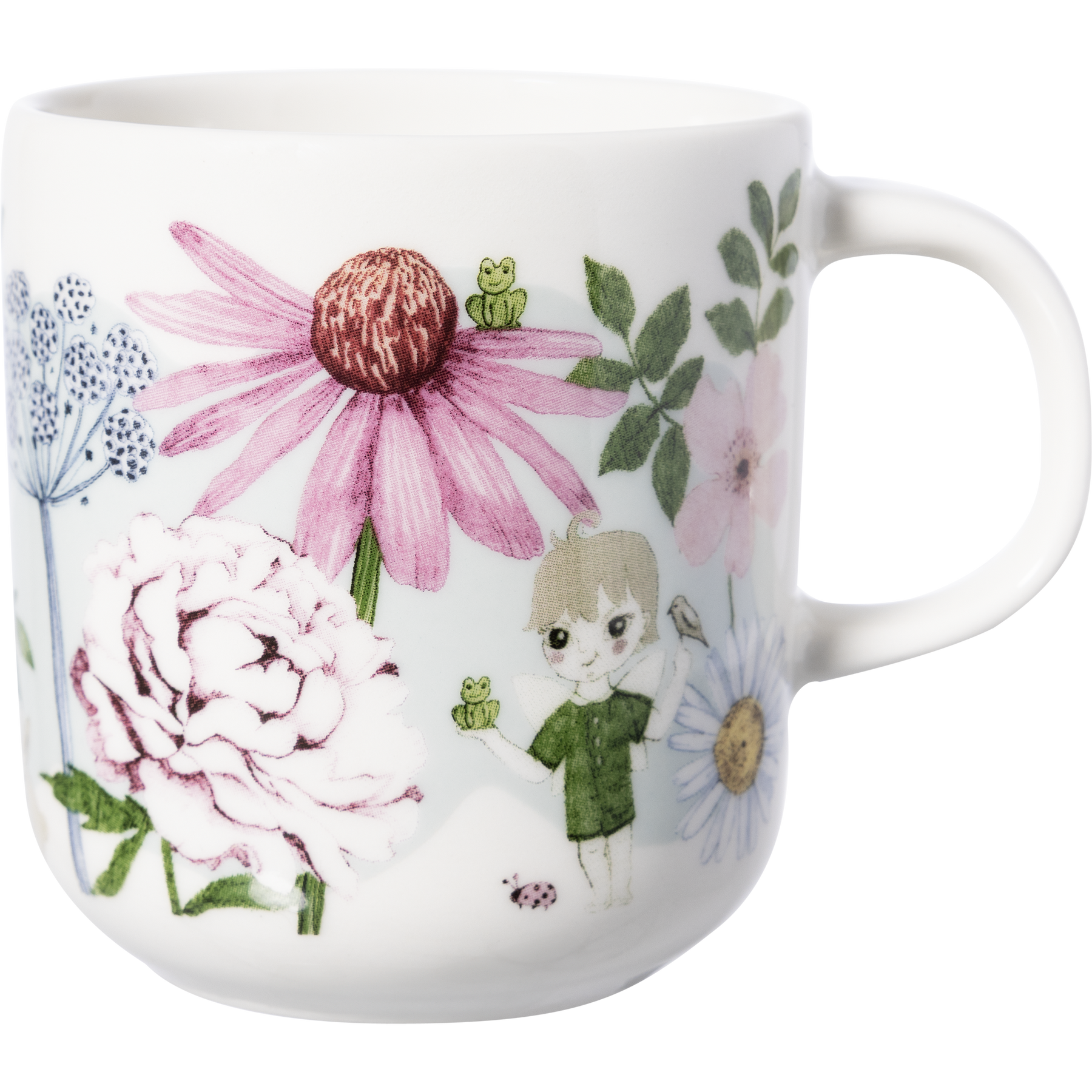 Kukkakeiju-mukin vetoisuus on 0,2 l. Lasten mukin voi pestä koneessa ja sitä voi huoletta käyttää sähköuunissa, leivinuunissa, mikroaaltouunissa sekä pakastimessa.