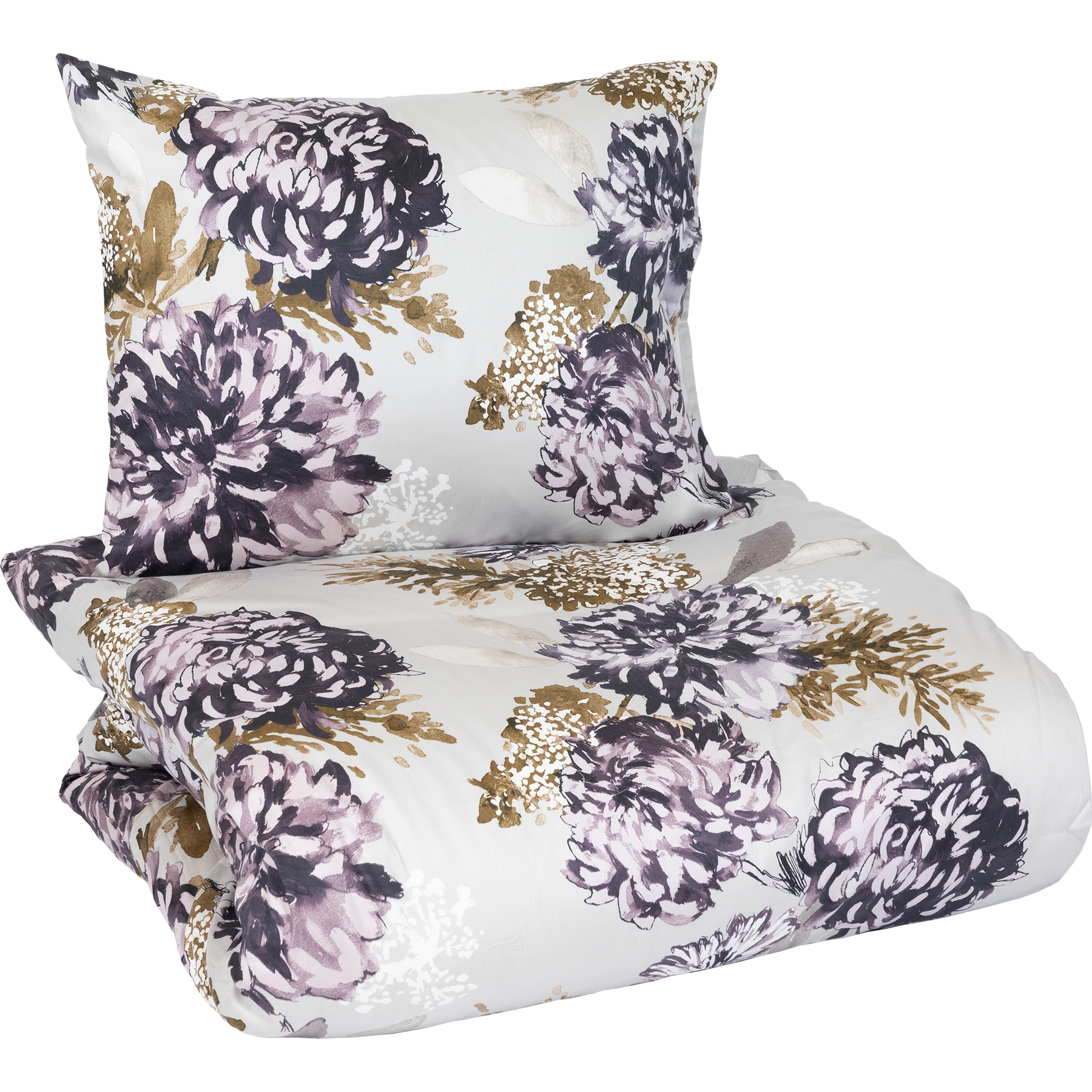 Kruunuja ei jaeta meillä Suomessa syntymässä, mutta kodissasi saat päättää, kuka on kuningatar. Minna Niskakankaan maalaama Kuningatar-kuosi tuo arkeen juhlan tuntua: siinä hehkuvat krysanteemit, sypressin oksat ja skimmiat – kuin suoraan kukkivasta talvipuutarhasta. Tämä pehmeä ja ylellinen puuvillasatiinisetti tuo makuuhuoneeseesi hiljaista arvokkuutta ja suomalaisen kodin kauneutta.
