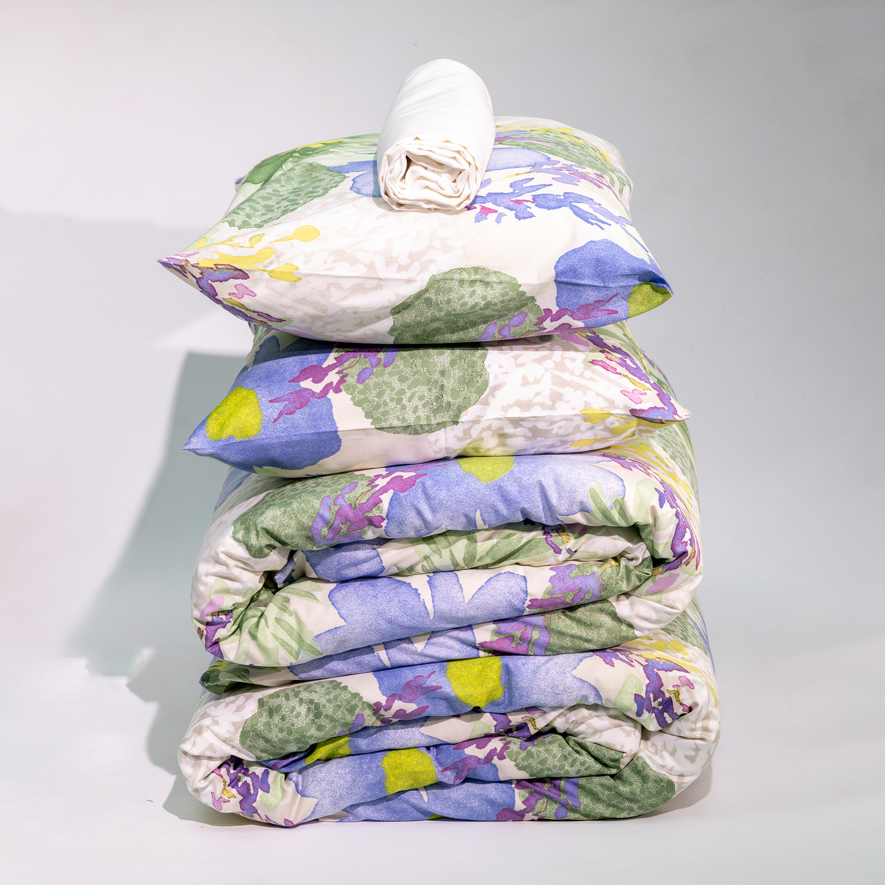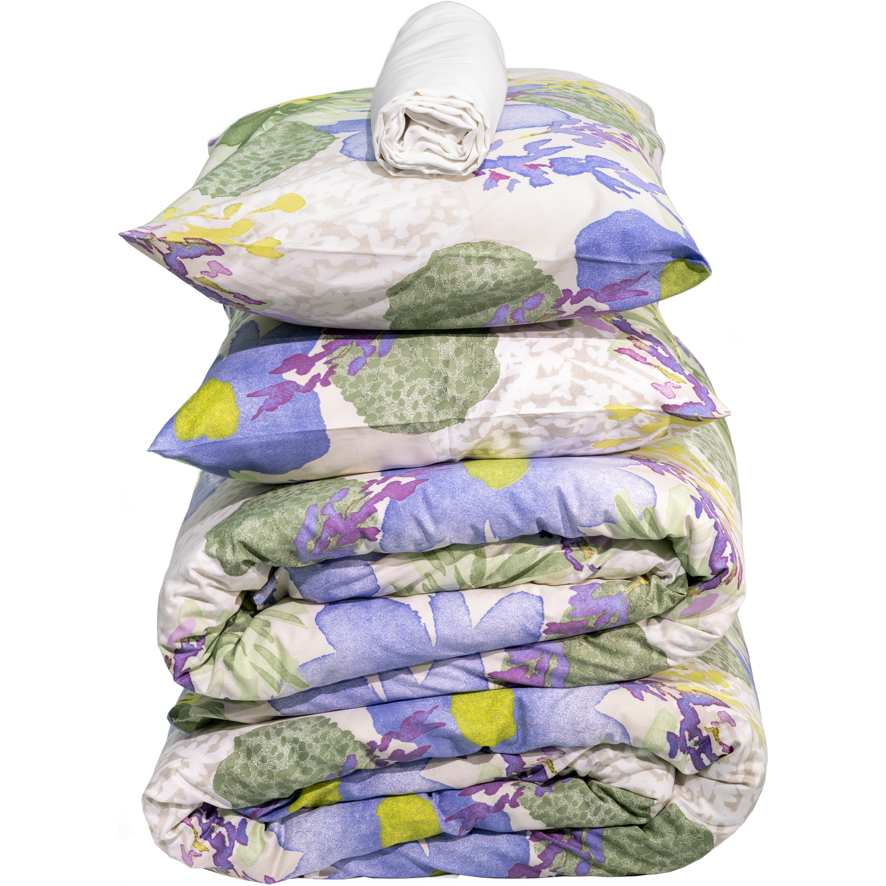 Laventeli-vuodevaatteet tuovat makuuhuoneeseen keväistä valoa ja energiaa. Settiin kuuluu kaksi Laventeli-pussilakanasettiä sekä valkoinen parivuoteen aluslakana.