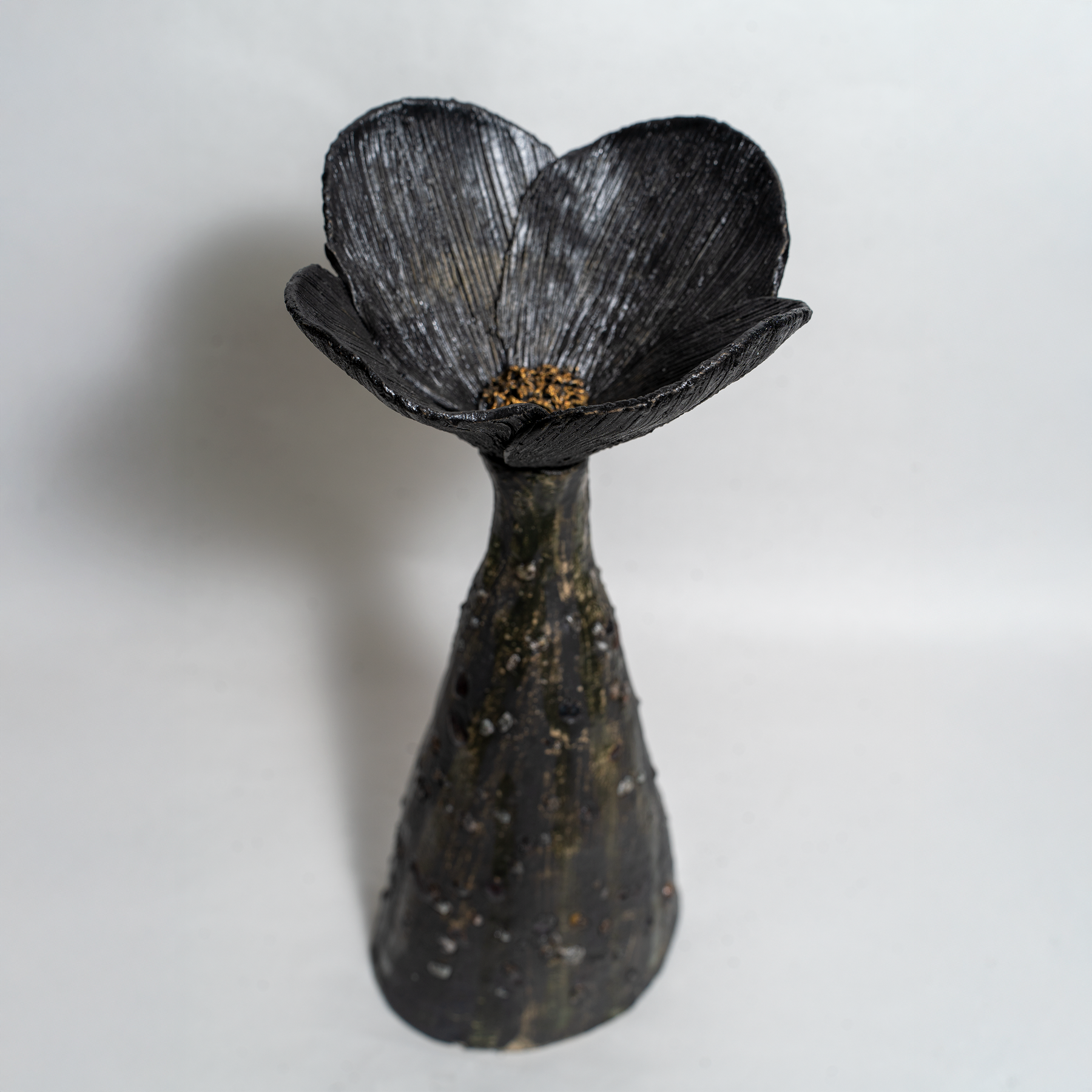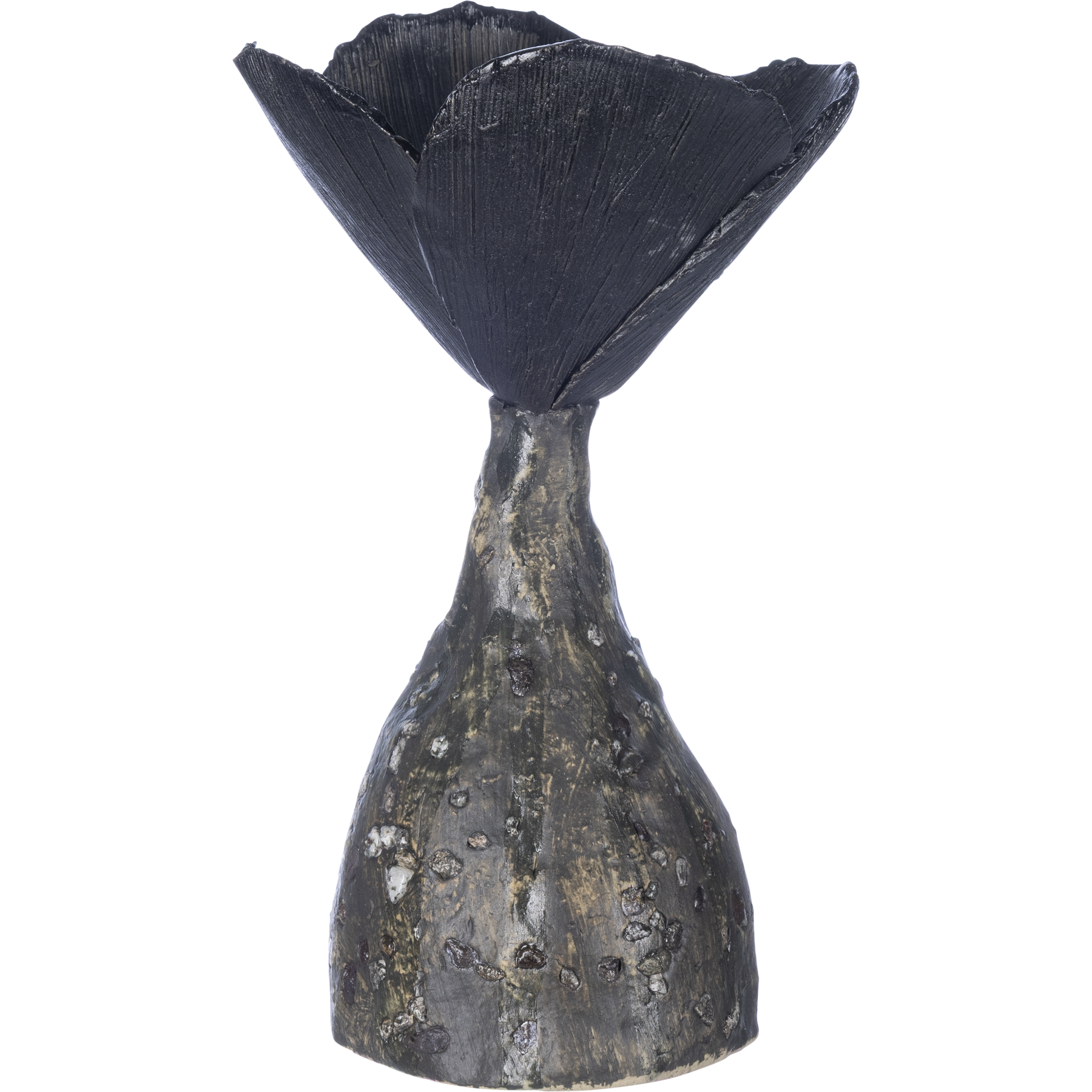 Mustan Leinikki-keramiikkaveistoksen korkeus on 20 cm. Valmistettu käsin Suomessa, Posiolla.