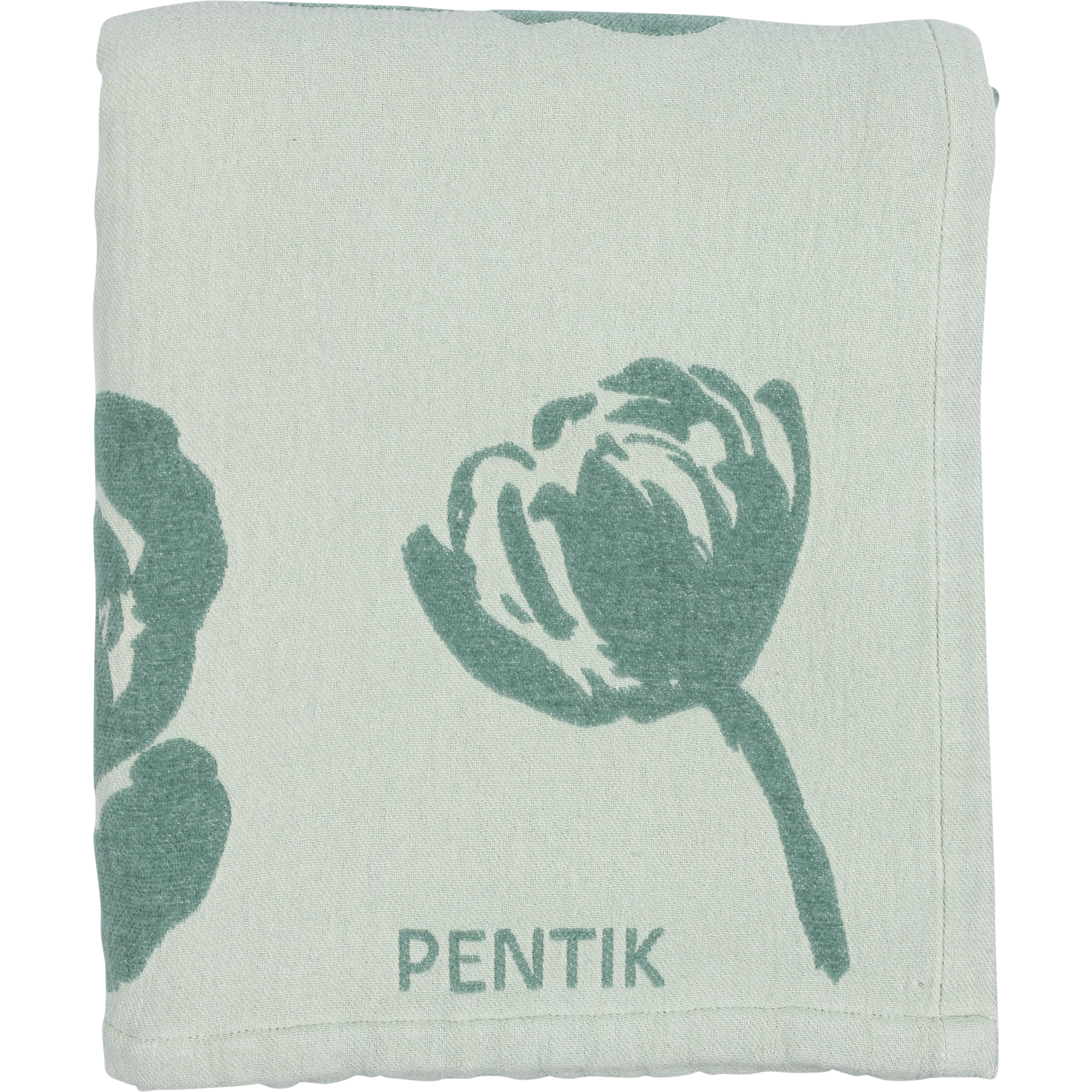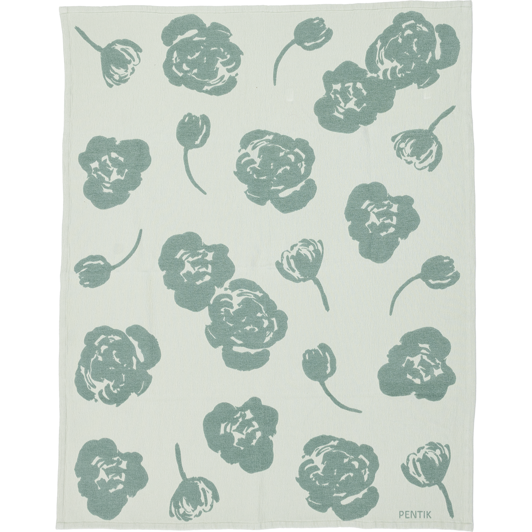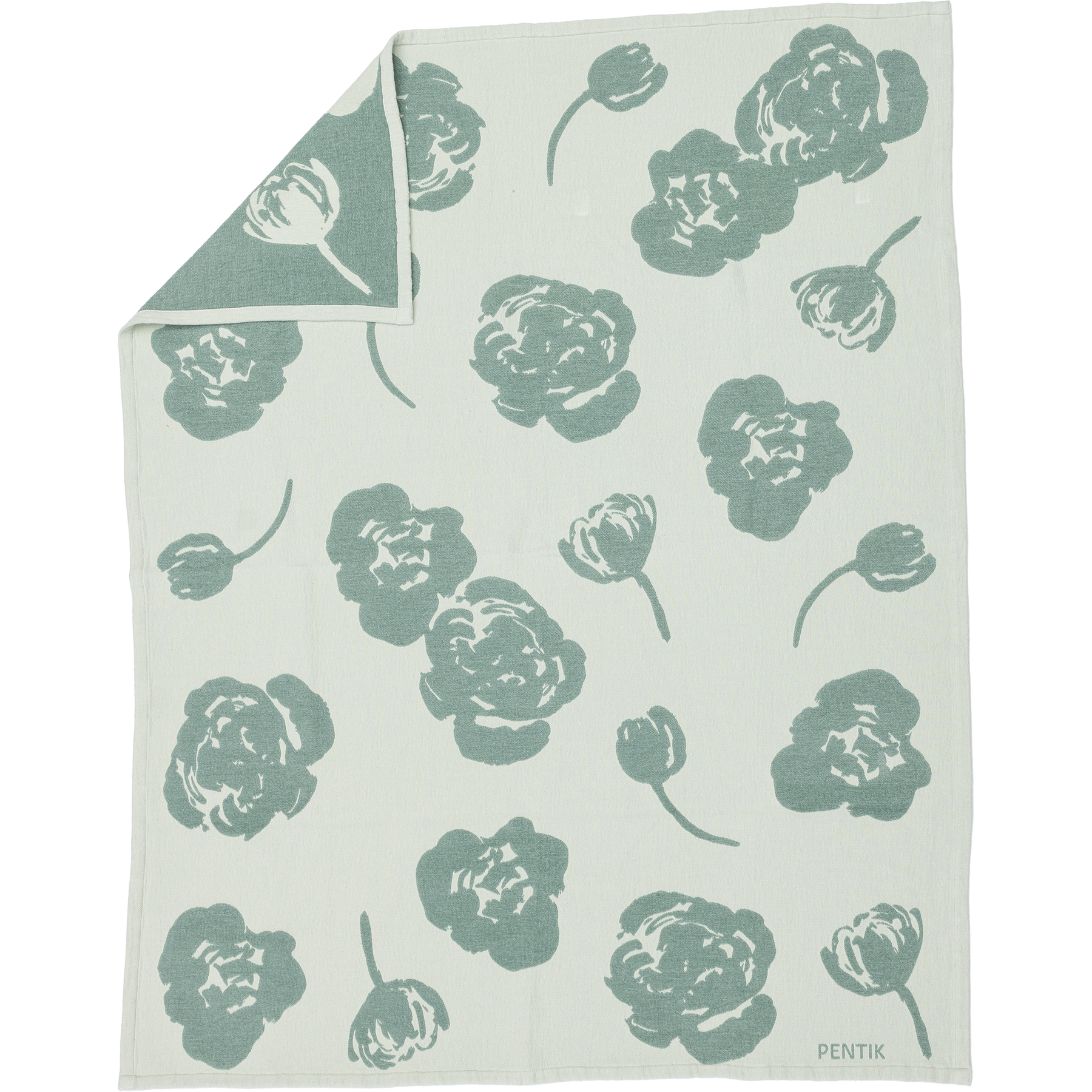 Vihreän Lilia-torkkupeiton koko on 130x170 cm ja se on 100% puuvillaa.