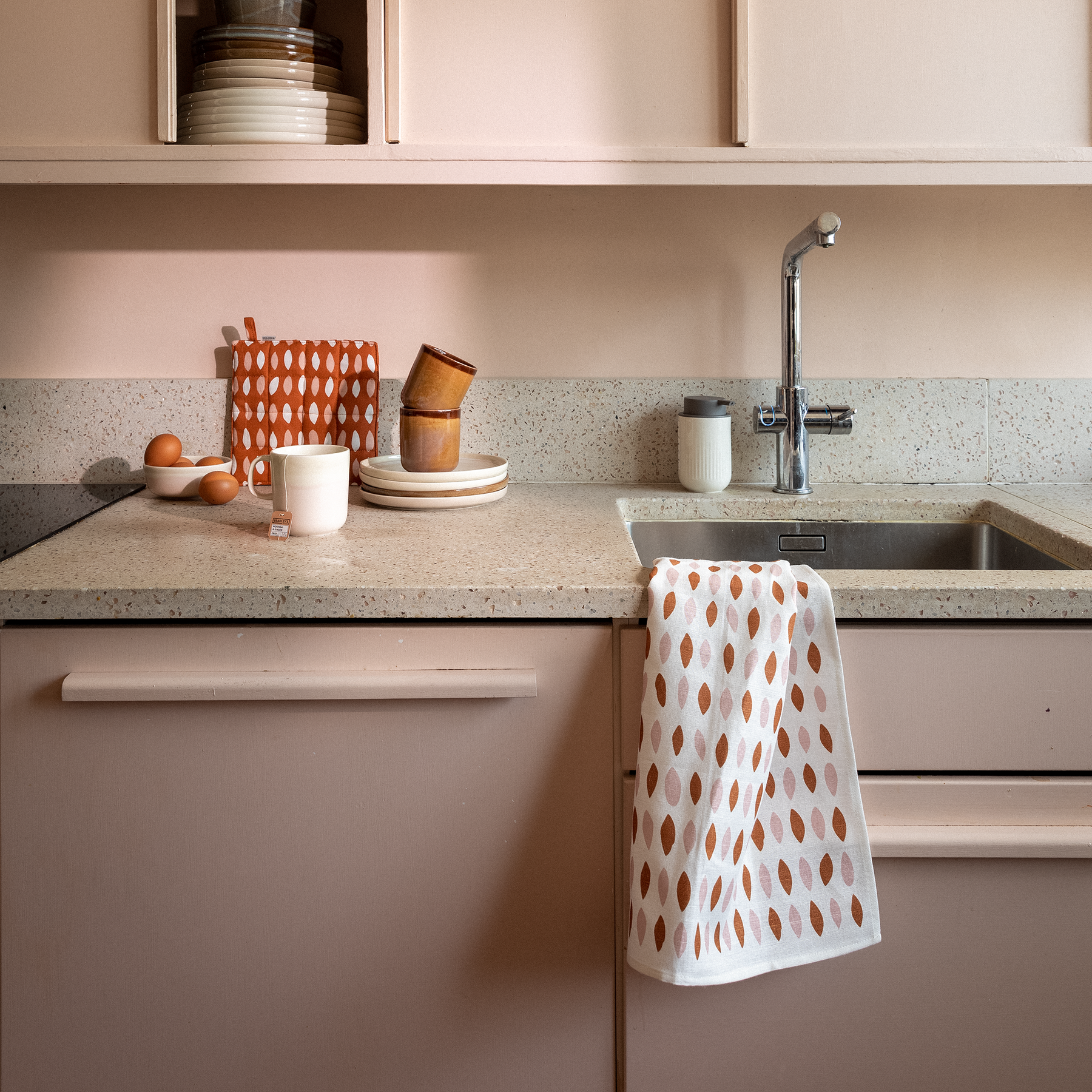 Onni voi olla sitäkin, että kodin sisustus saa hyvälle tuulelle. Jos näin on, niin Minna Niskakankaan hauskaan Manteli-kuosiin on ladattu onnea. Paljon. Manteli-kuosia löydät valikoimastamme keittiötekstiileinä.