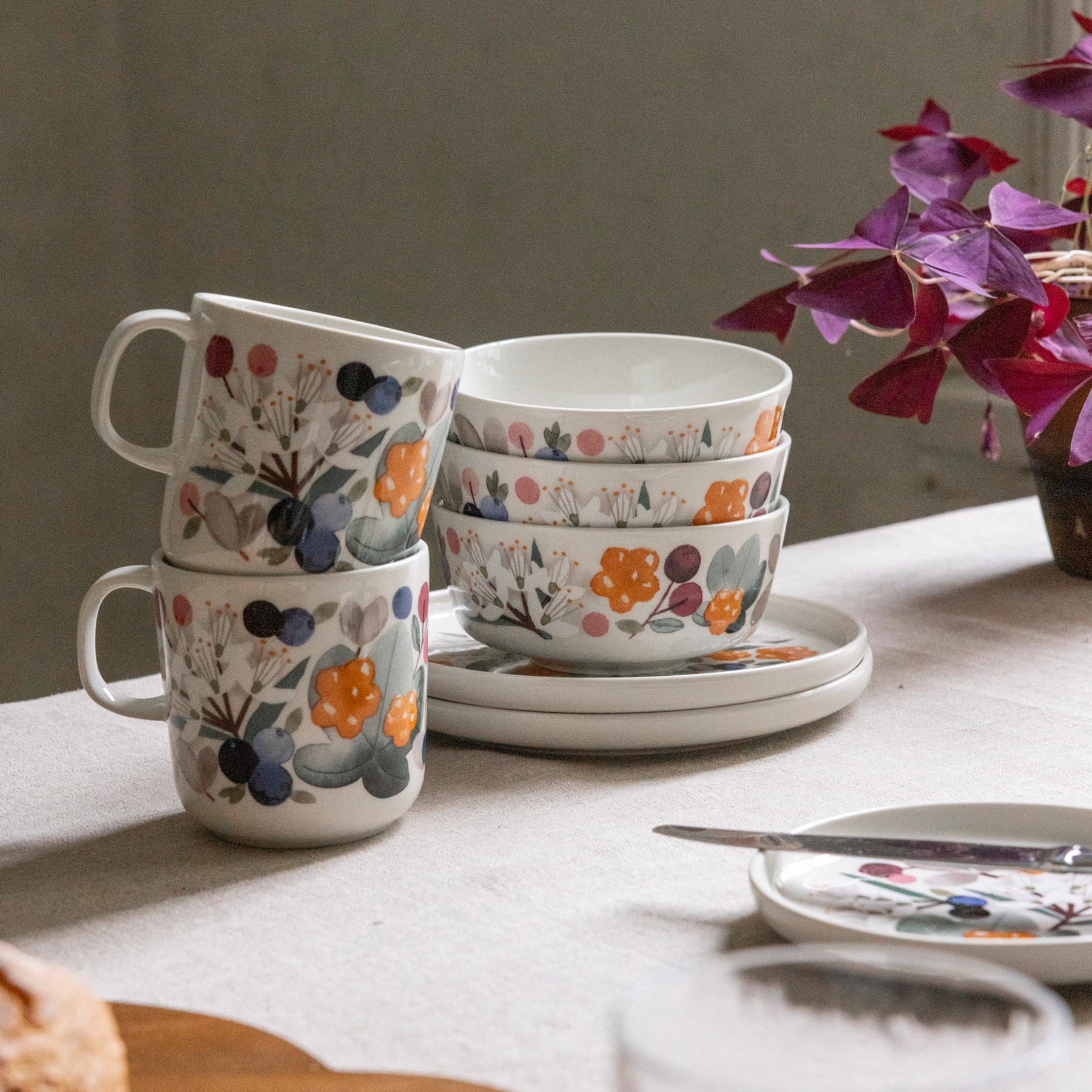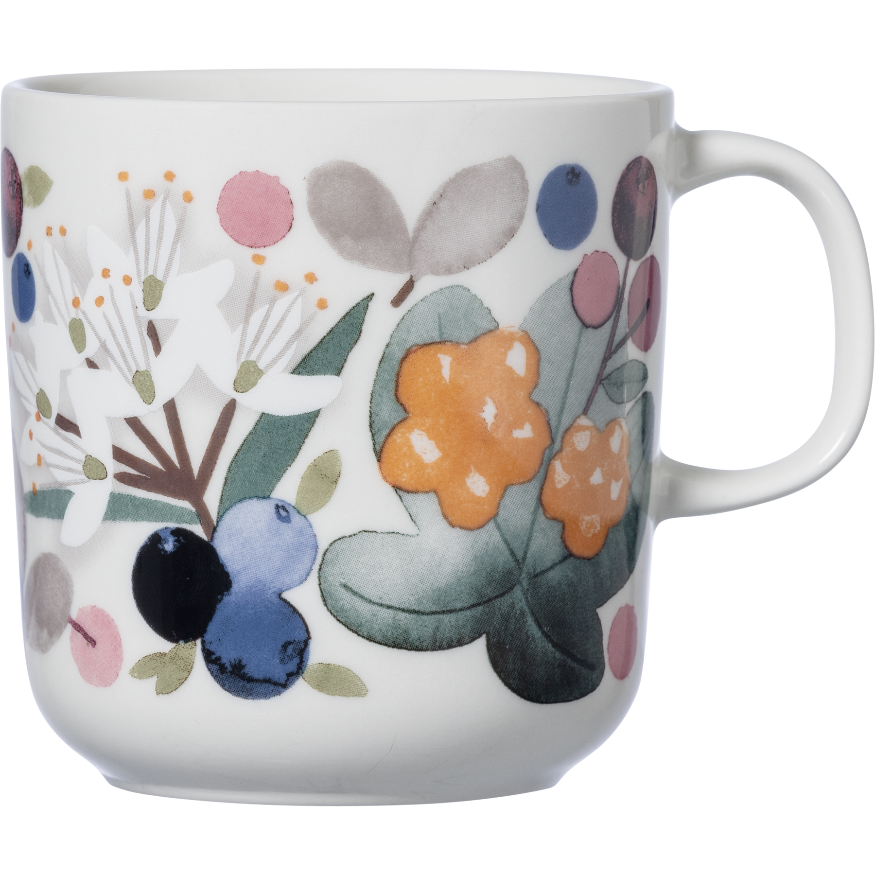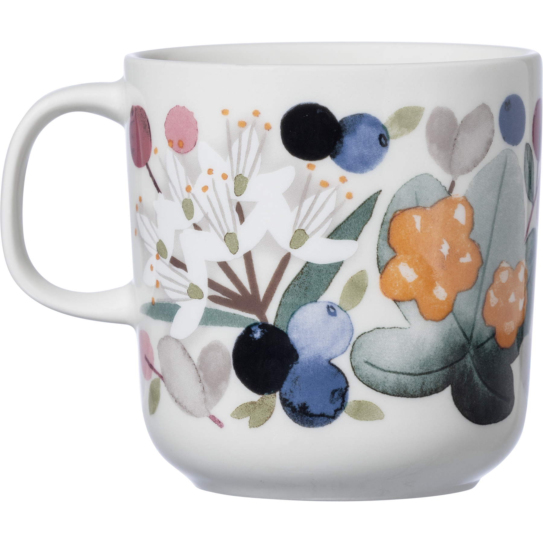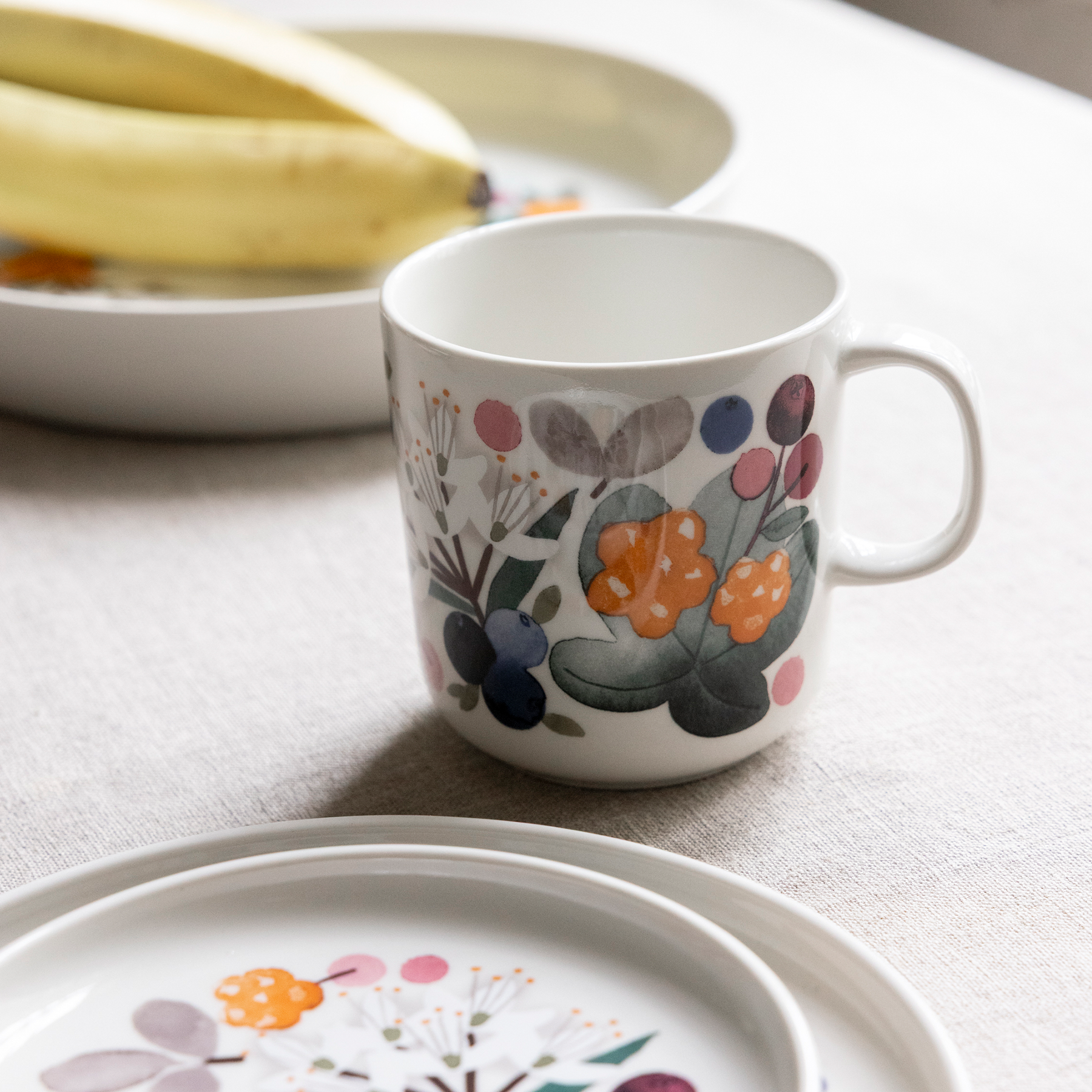 Metsämarja-mukin tilavuus on 0,35 litraa ja se on valmistettu Posion keramiikkatehtaalla. Mukin voi pestä koneessa ja sitä voi huoletta käyttää sähköuunissa, leivinuunissa, mikroaaltouunissa sekä pakastimessa.