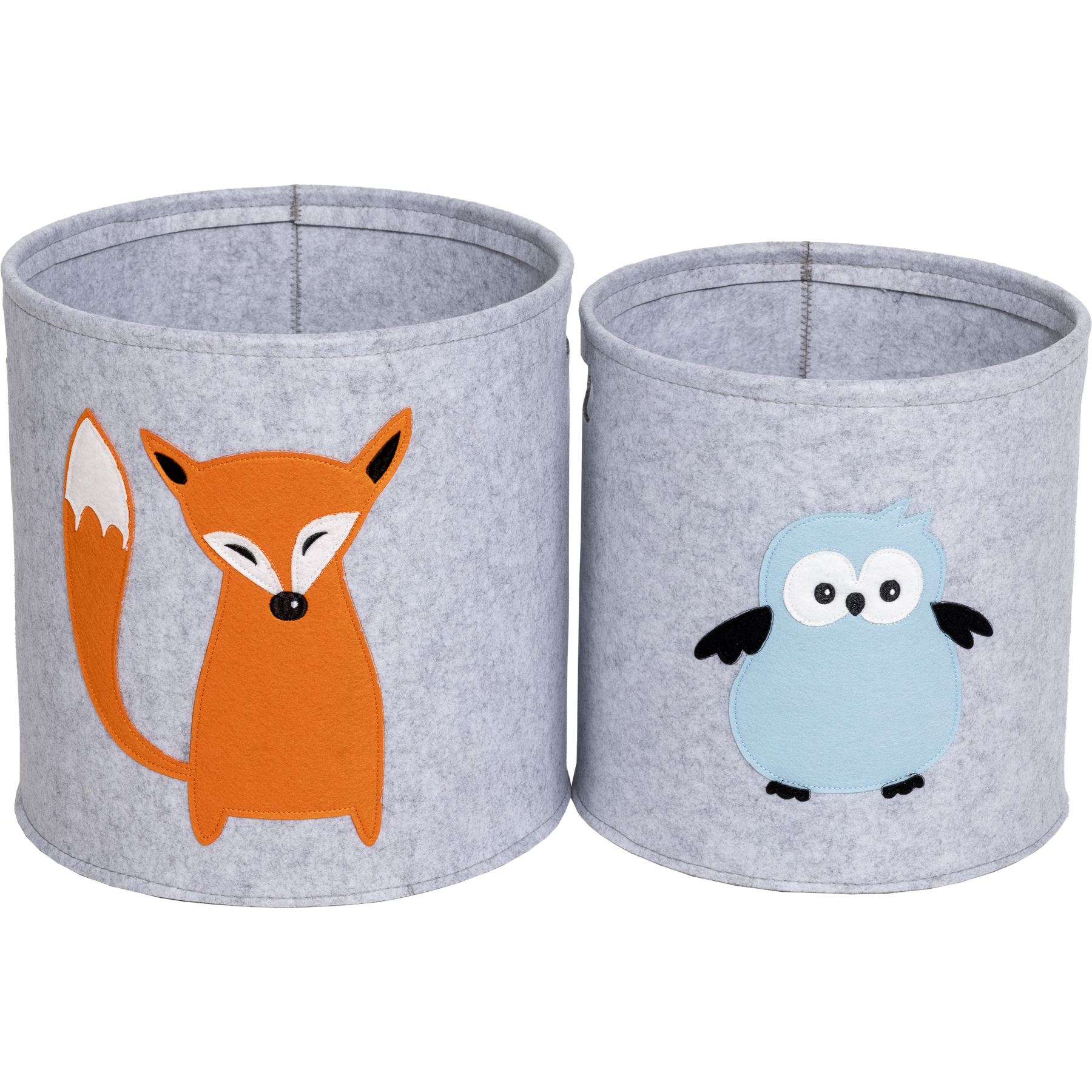 Lastenhuoneeseen sopivat säilytyskorit ovat kooltaan 37x37 cm ja 32x32 cm. Setti sisältää kaksi koria. Valmistettu polyesteristä.