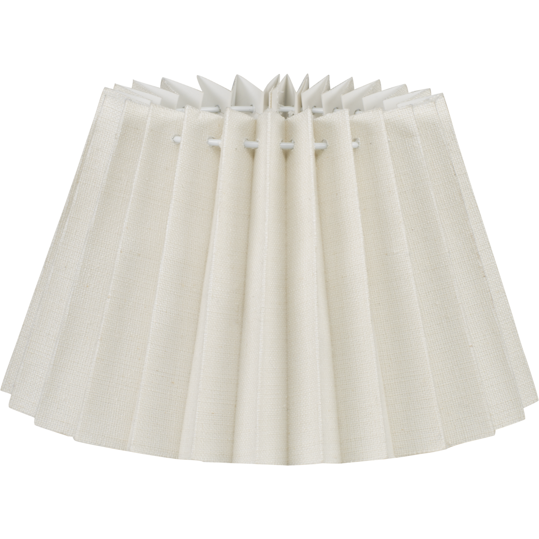 Valkoinen, vekattu Moderni-varjostin on tehty puuvillasta ja viskoosista, joiden yhdistelmä tekee kankaasta silkkisen tuntuisen. Varjostinta valmistetaan kahdessa koossa: 26x16 cm ja 37x23 cm. Puhdistus huonekalusuuttimella kevyesti imuroiden. Halkaisija 26 cm. Varjostin kiinnitetään kiristysrenkaalla valaisimeen. Sopii E27-kantaisiin lampunjalkoihin.