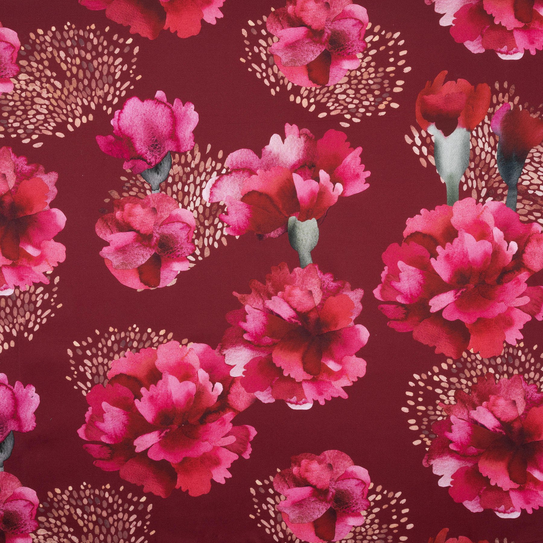 Punainen neilikka sykkii joulun tunnelmaa! Lasse Kovasen suunnittelema näyttävä Neilikka-kuosi tuo joulun kotiisi. Upeiden kukkien koristaman Neilikka-kankaan leveys on 150 cm ja materiaali puuvillaa. Raporttikoko on 64 cm. Konepesu varovaisella ohjelmalla 60 asteessa. Voi kutistua 4 % ensimmäisellä pesukerralla.