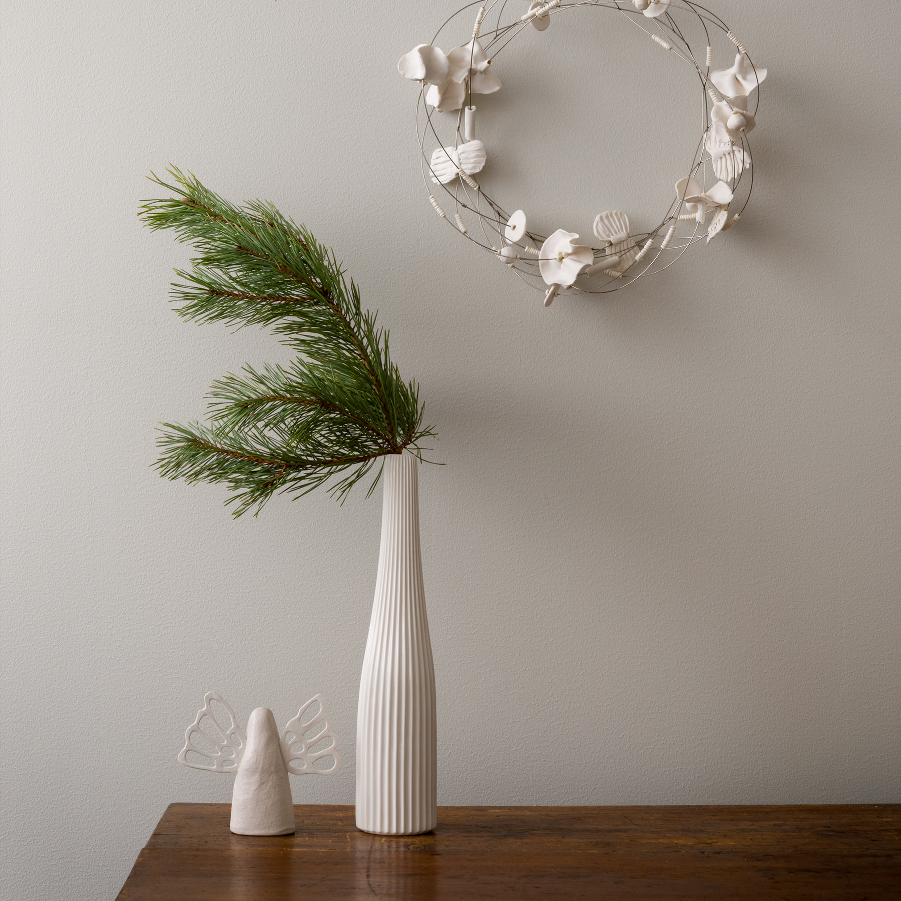 Käsin tehdyissä esineissä on aina jotain erityistä - aivan kuten tässä Anu Pentikin suunnittelemassa ja keramiikkatehtaallamme käsin valmistetussa Pilvi-kranssissa. Herkkä Pilvi-kranssi on kuin pieni taideteos, joka tuo ainutlaatuista kauneutta jokaiseen kotiin. Kranssi on rakennettu valkoisista keraamisista koristeista, jotka on pujotettu teräslankaan ja kieputettu pilvimäiseksi muodostelmaksi. Pilvi-kranssin halkaisija on 35 cm. Voi ruostua ulkokäytössä.