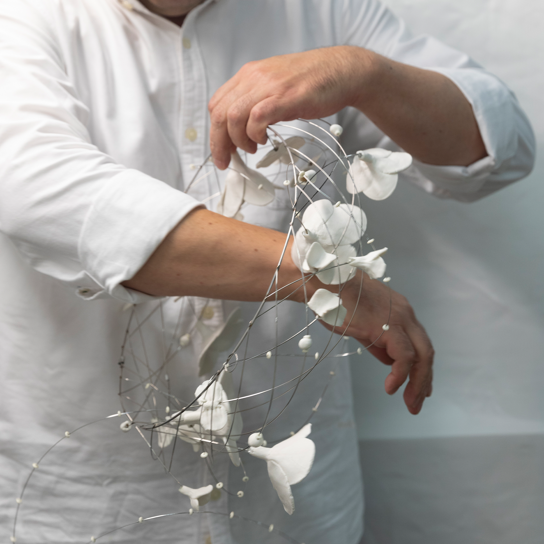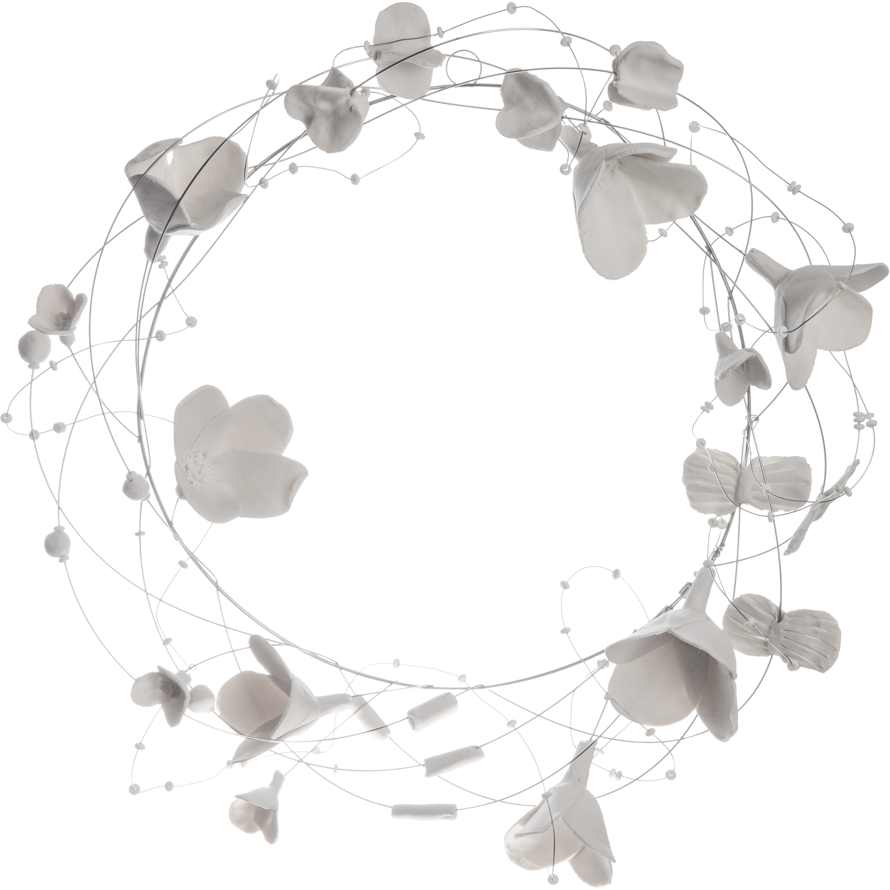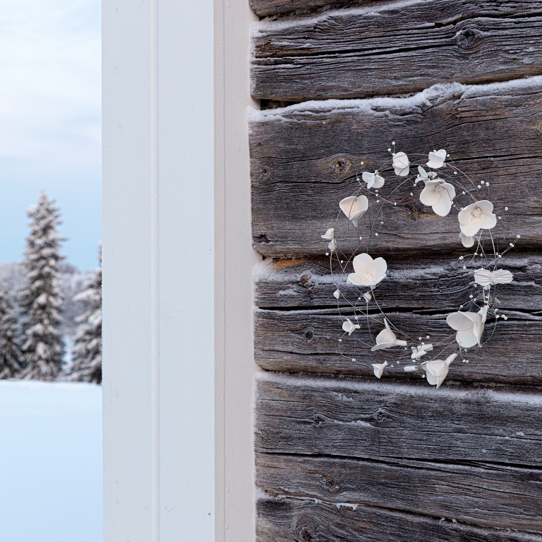 Käsin tehdyissä esineissä on aina jotain erityistä - aivan kuten tässä Anu Pentikin suunnittelemassa ja keramiikkatehtaallamme käsin valmistetussa Pilvi-kranssissa. Upea Pilvi-kranssi on kuin pieni taideteos, joka tuo ainutlaatuista kauneutta jokaiseen kotiin. Kranssi koostuu valkoisista keramiikkakukista ja helmimäisistä koristeista, jotka on pujotettu teräslankaan ja kieputettu pilvimäiseksi muodostelmaksi. Pilvi-kranssin halkaisija on 43 cm. Voi ruostua ulkokäytössä.