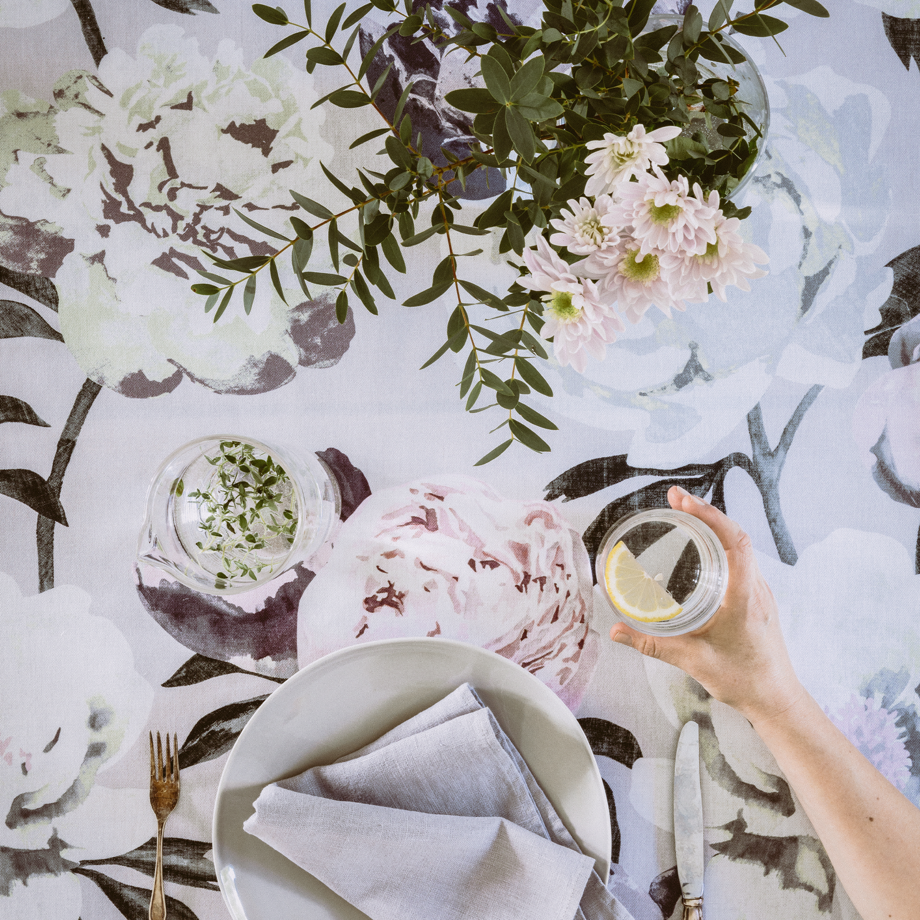 Aina ei tarvitse olla multanäppi nauttiakseen kukkien loistosta. Liina Harjun Pioni-kuosi tuo pionin kauniin herkkyyden kaikkialle kotiin ilman huolta huolenpidosta.