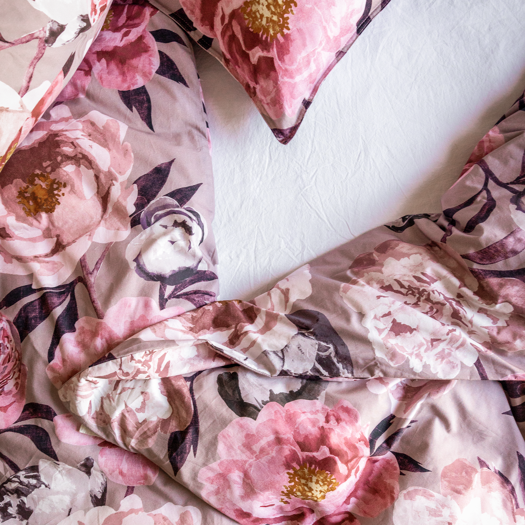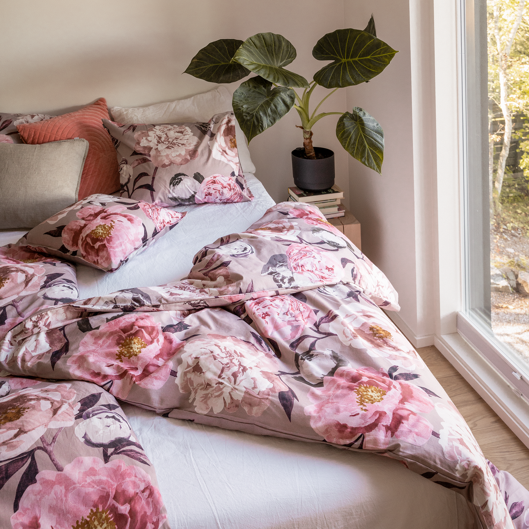 Aina ei tarvitse olla multanäppi nauttiakseen kukkien loistosta. Liina Harjun Pioni-kuosi tuo pionin kauniin herkkyyden kaikkialle kotiin ilman huolta huolenpidosta. Se tuo väriä alkutalven tunnelmallisen hämärän keskelle. On aika vetää peittoa korville ja ladata akkuja. Pioni-sarja tarjoaa kodinsisustukseen tekstiilejä, kuten pöytäliinoja, vuodevaatteita ja tyynynpäällisiä.