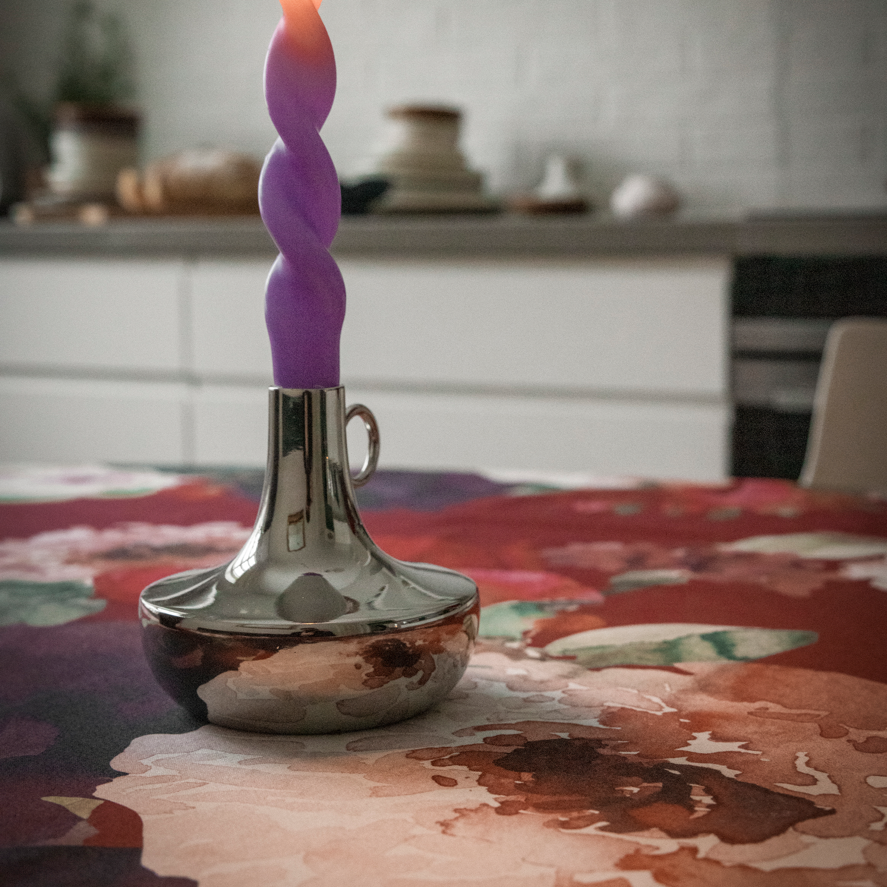 Kynttilänjalka on alumiinia ja se sopii kruunukynttilälle. Kynttilänjalan koko on 12x11 cm ja se on kiiltäväpintainen.