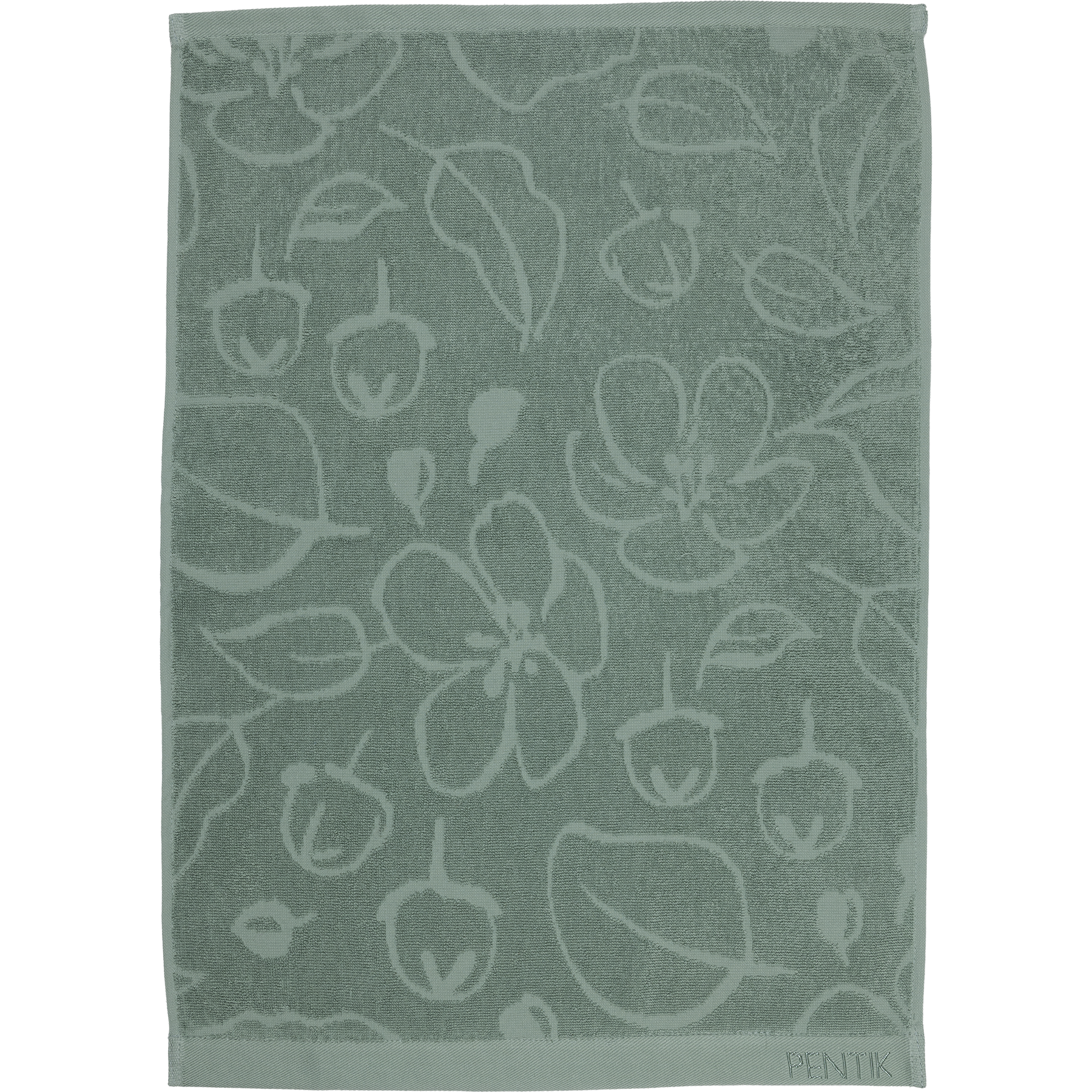 Purppuraomenapuu-sarjan vihreä käsipyyhe on kooltaan 50x70 cm. Pyyhe on 100% puuvillafroteeta ja sen voi pestä koneessa 60 asteessa.