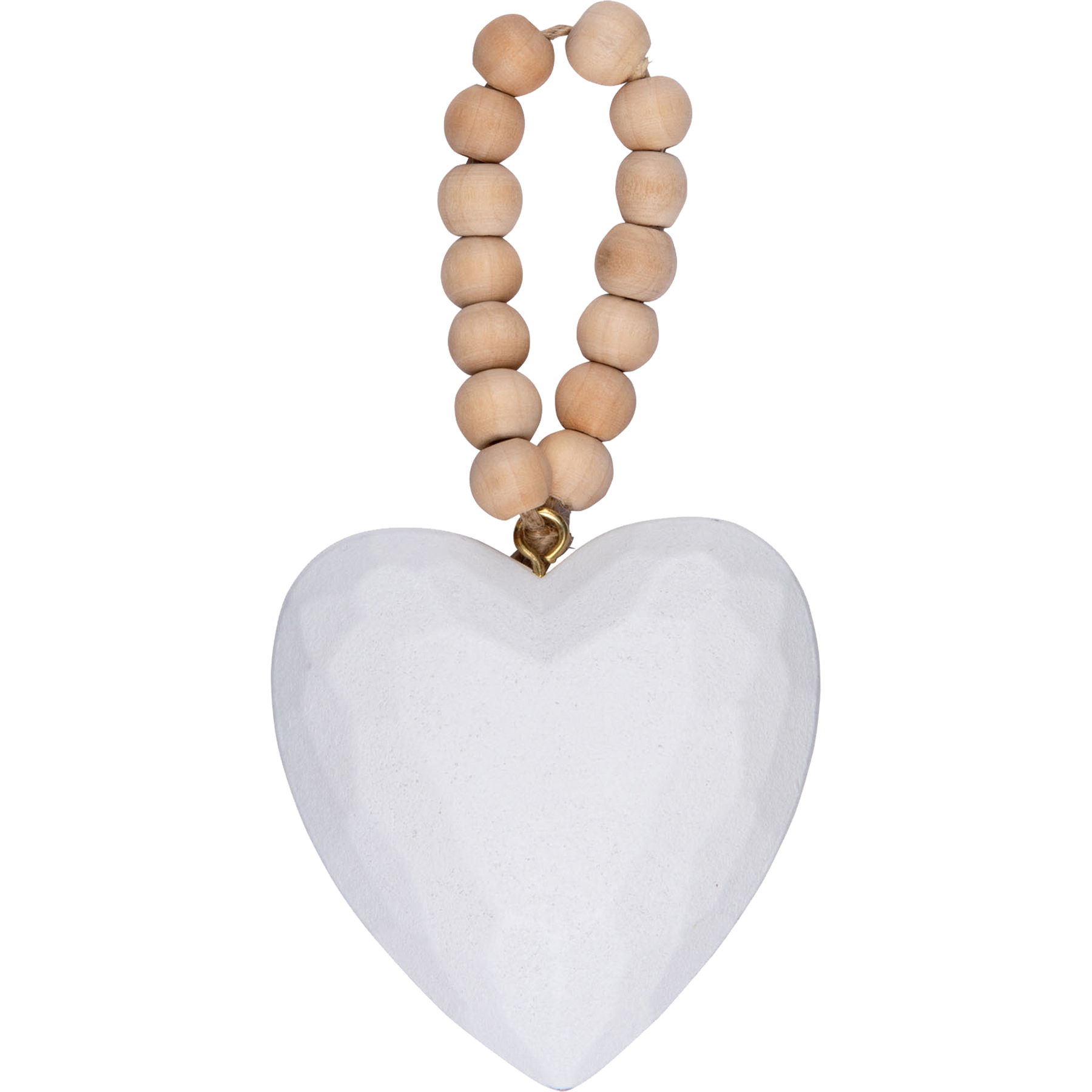Puusydän-koristeessa on puuhelmin koristeltu ripustusnauha ja sen koko on 7 cm.