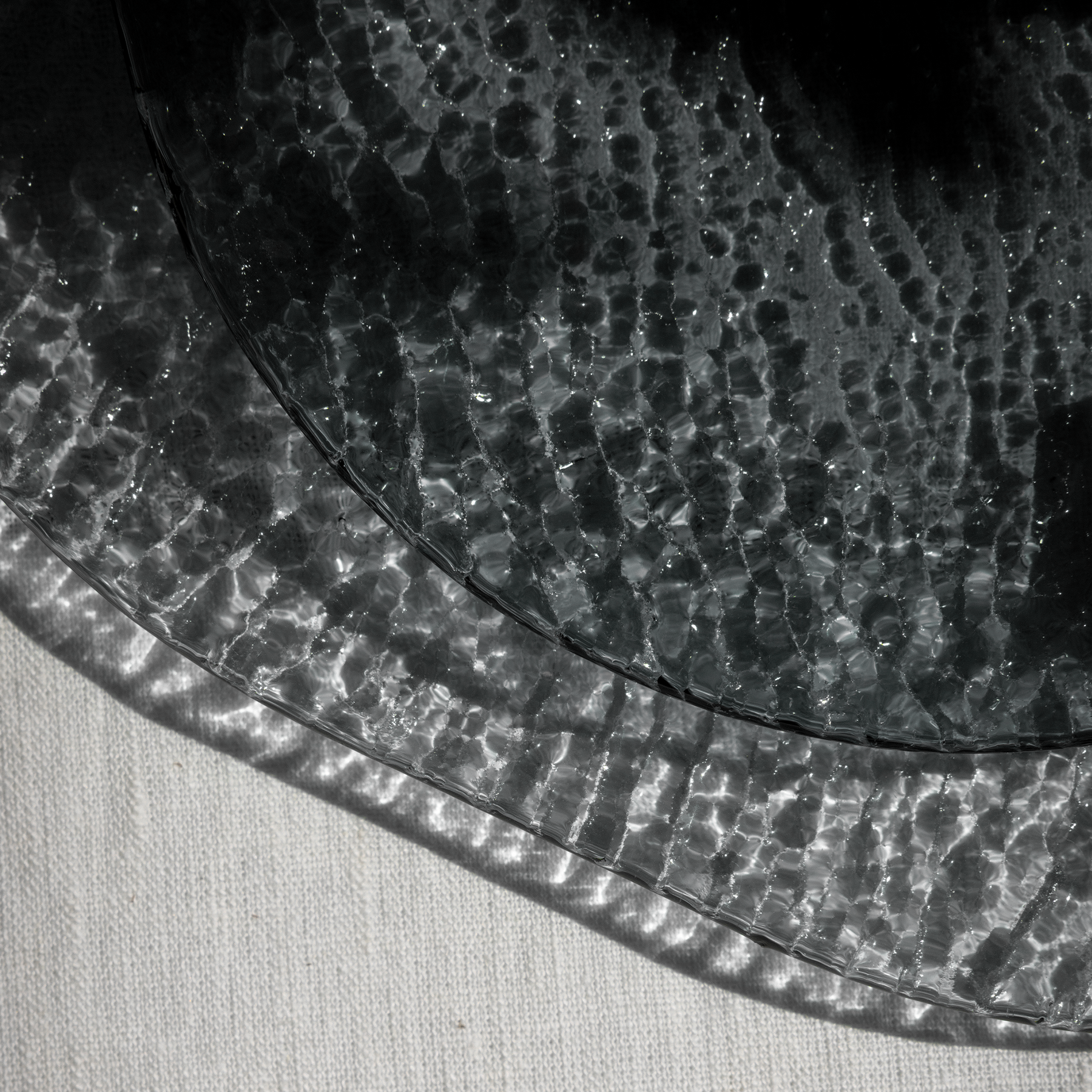 Talven tullessa kylmä pakkaspuhuri puhaltelee järven pintaan lasitaidettaan. Riite-lasilautasessa voi nähdä ohueen jääpeitteeseen – riitteeseen – piirtyneitä kuvioita. Lautanen sopii ruokailun lisäksi tarjoiluastiaksi ja yksityiskohdaksi sisustukseen. Saatavilla vihreänä ja harmaana, kolmessa koossa.