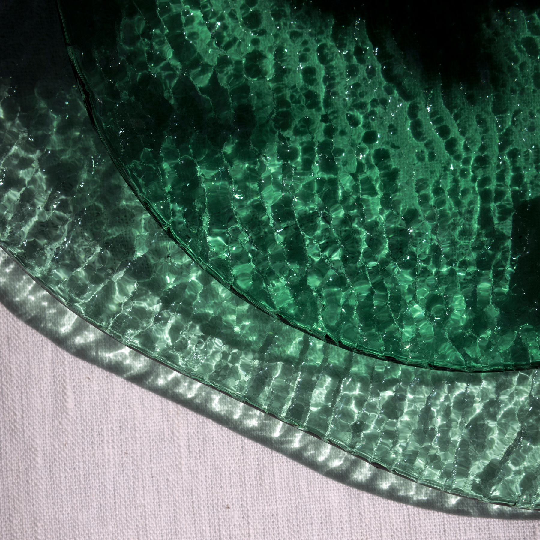 Vihreän Riite-lasilautasen halkaisija on 20x20 cm ja sen voi pestä astianpesukoneessa. Ei kestä kuumentamista mikroaaltouunissa.