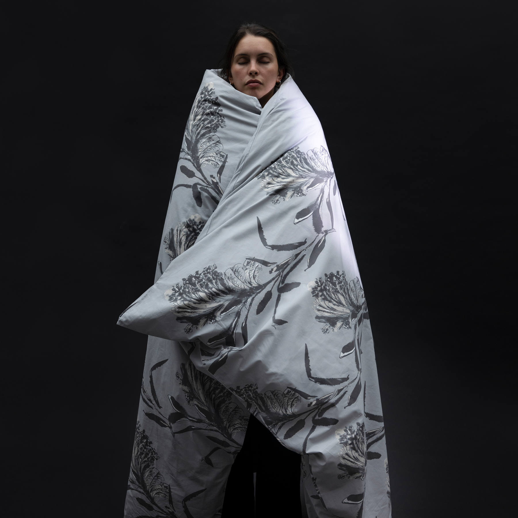 Kun syksyinen merituuli vihmoo sadetta kasvoille, rannan ruo´ot kumartuvat kyyryyn aivan kuten me ihmiset. Jääriitteen keskeltä kurottuvat hennot tähkäpäät saivat suunnittelija Minna Niskakankaan tarttumaan siveltimeen. Märälle paperille levinnyt muste loi ruo´oille pakkashuurteisen ilmeen. Ulkoa syyssateesta on mukava palata kodin lämpöön. Sukeltaa Ruoko-peiton alle ja tarttua hyvään kirjaan.