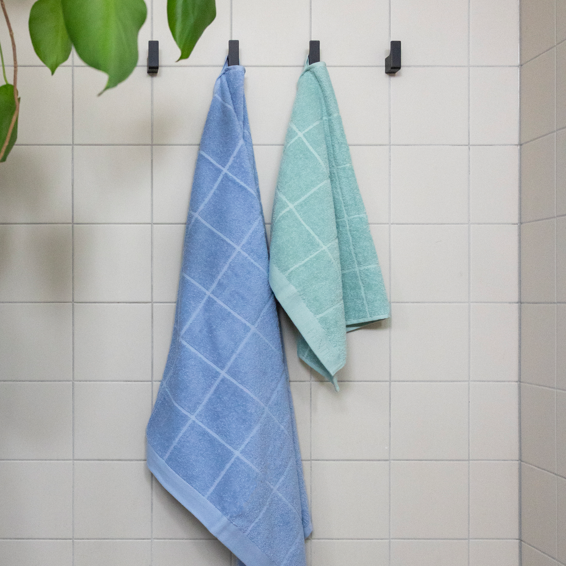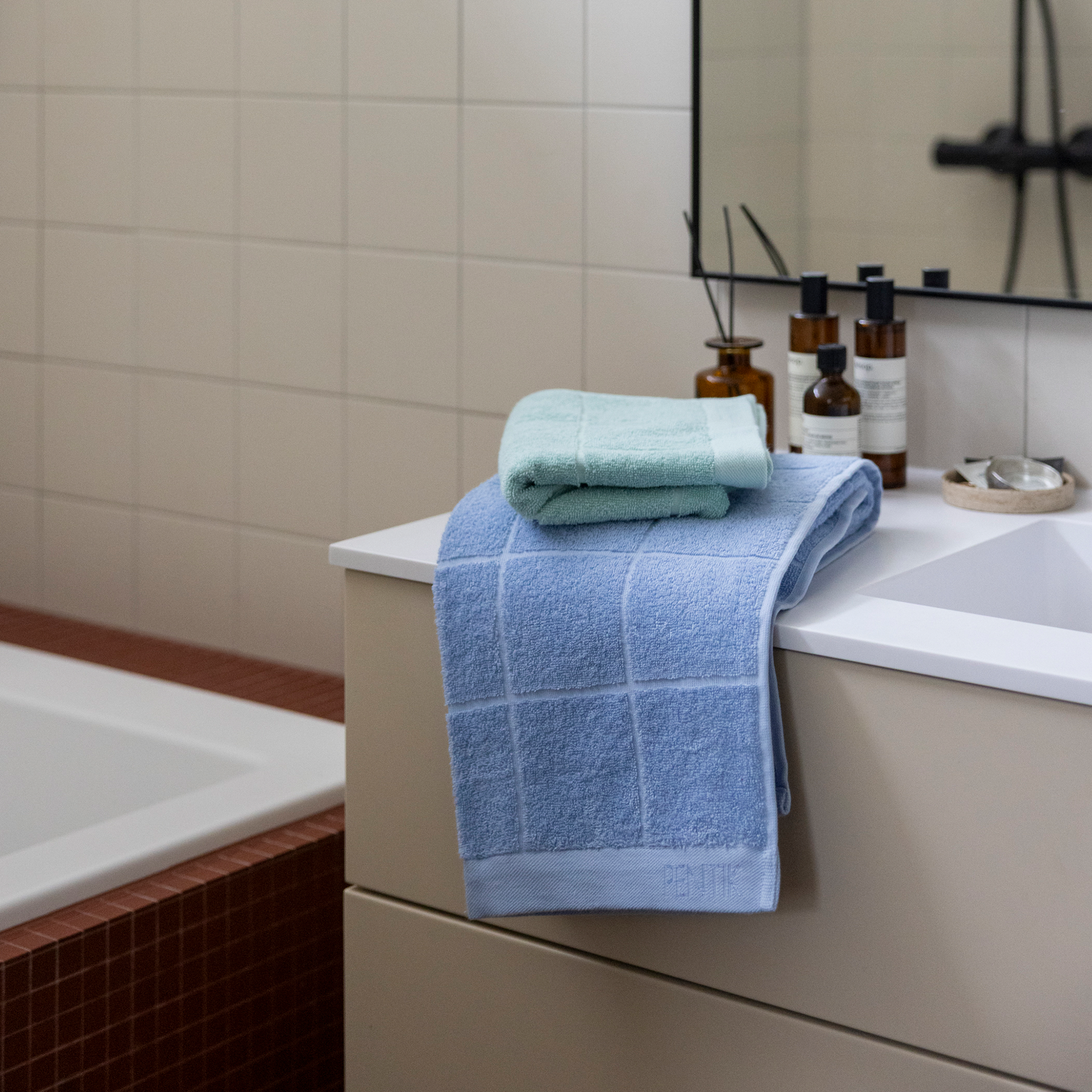 Yksinkertainen on kaunista. Yksivärinen Ruutu-kylpypyyhe ei koreile koristeilla, vaan hurmaa graafisella ryhdikkyydellään. Lempeän taivaansininen kylpypyyhe on kooltaan 70x140 cm ja sen materiaali on 100% puuvillafroteeta. Konepestävä 60 asteessa.