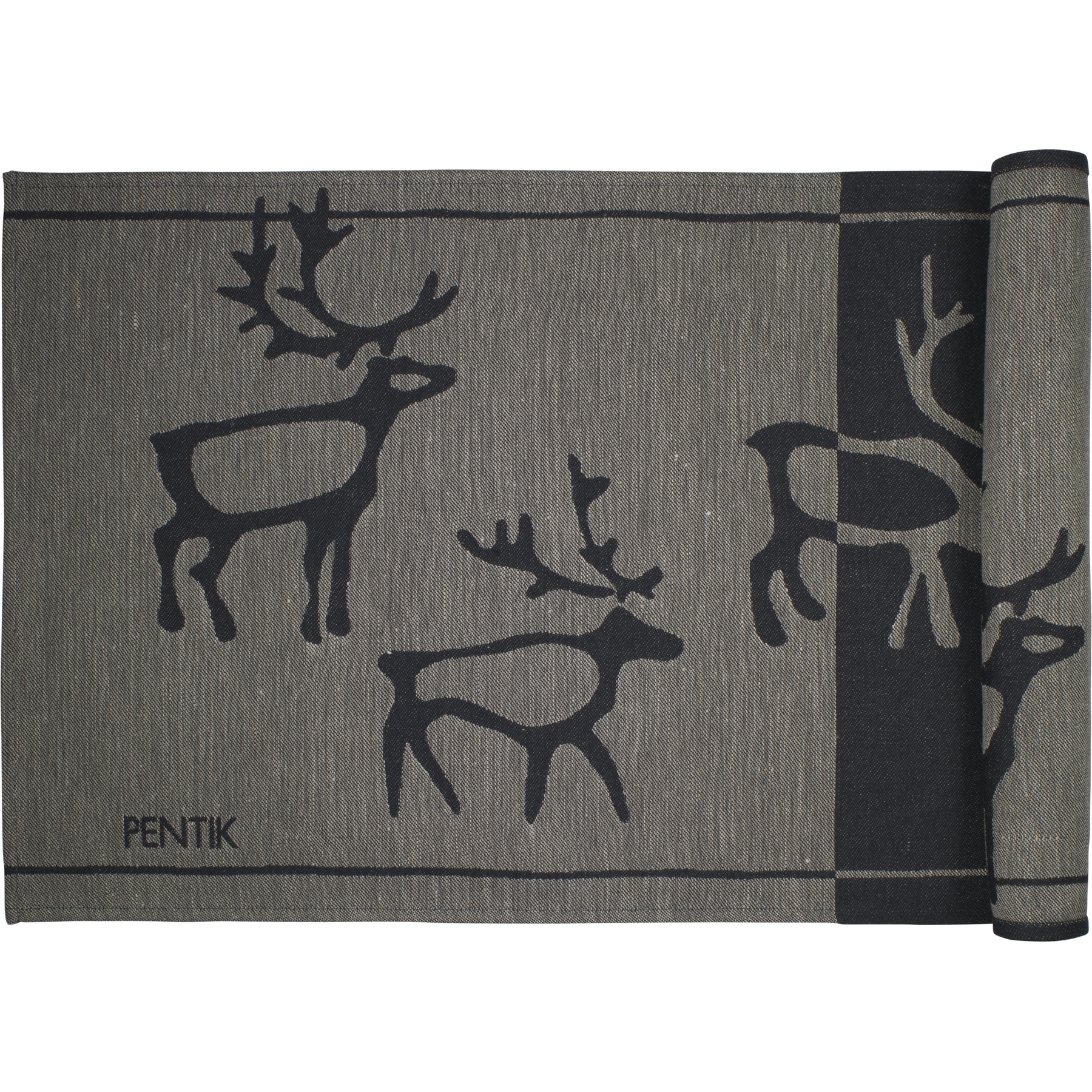 Saaga-laudeliinan koko on 46x150 cm. Materiaali on 50 % pellavaa ja 50 % puuvillaa, ja laudeliinat voi pestä koneessa 40 asteessa.