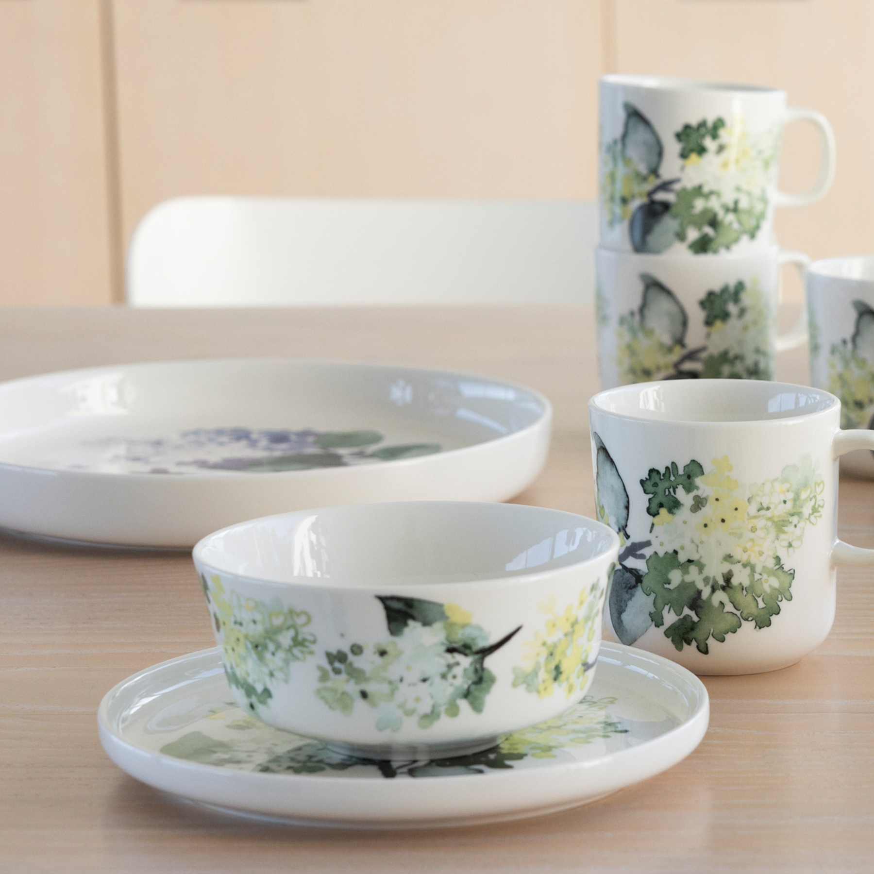 Pohjoisen kesässä pensaat ja puut kukkivat vain ohikiitävän hetken. Uskomme, että se on luonnon tapa opettaa meille kauneuden äärelle pysähtymistä. Suunnittelijamme Minna Niskakangas ikuisti pihasyreenien kukinnan, jotta voit nauttia siitä vuodenajasta riippumatta. Syreeni-astioilla kattaessa voi melkein tuntea niiden rauhoittavan tuoksun.