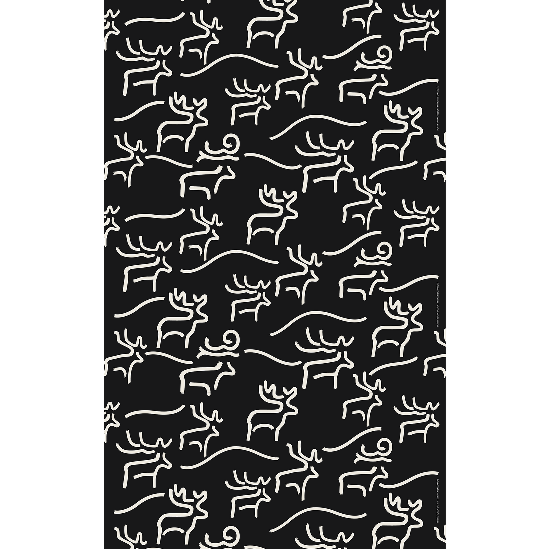 Minna Niskakankaan Tokka-kuosi on uusi tulkinta yhdestä Pentikin tunnetuimmasta ja rakastetuimmasta aiheesta – porosta. Moderniin tyyliin sopiva, graafisen mustavalkoinen Tokka-kangas tuo kaikkiin tiloihin ripauksen pohjoisen luonnon ainutlaatuista ja villiä tunnelmaa. Mustapohjainen Tokka-kangas on helppohoitoista akryylipinnoitettua puuvillaa ja sen leveys on 150 cm. Pinnoitetusta kankaasta tehdyt kattaustektiilit sopivat hyvin keittiöön ja ruokailutilaan, sillä ne on helppo pyyhkiä puhtaaksi. Konepesu varovaisella ohjelmalla 40 asteessa.