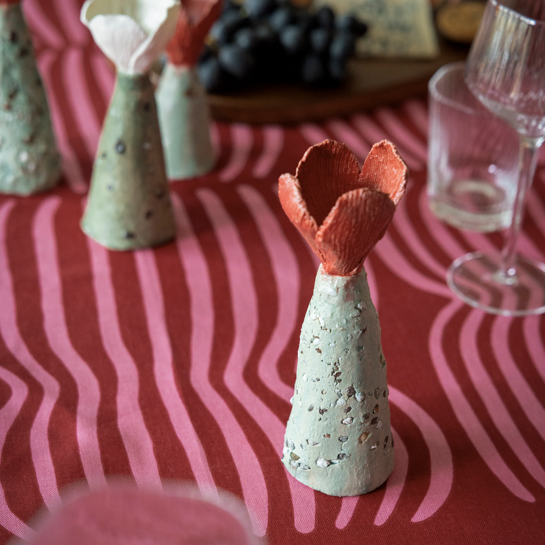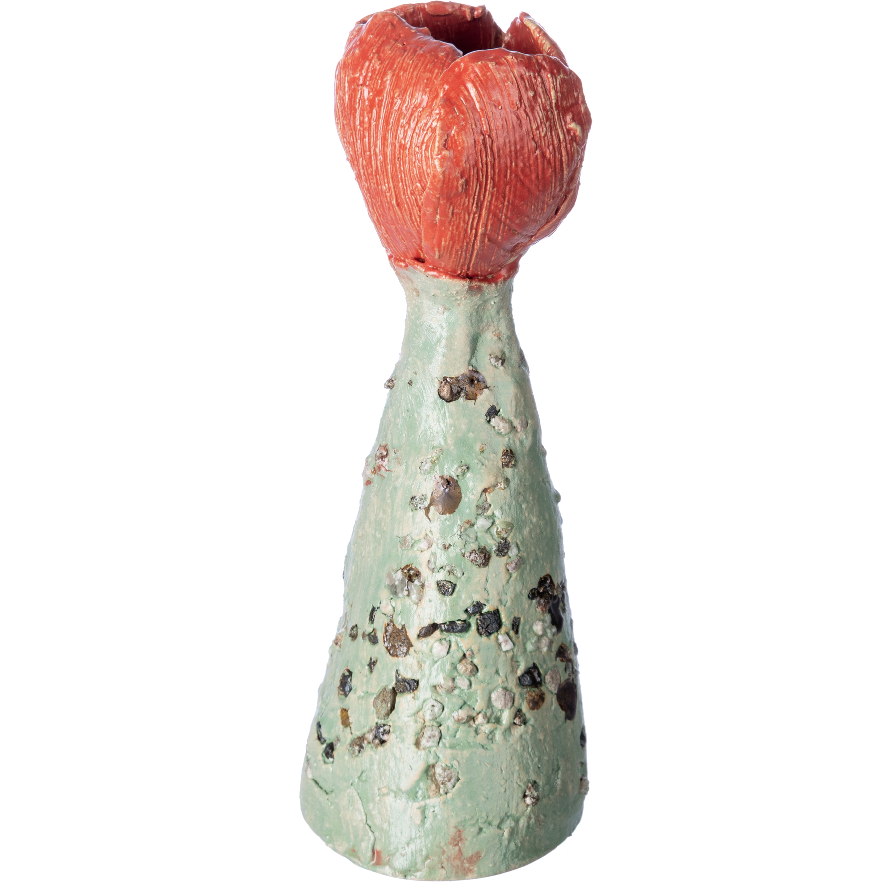 Punaisen Tulppaani-keramiikkaveistoksen korkeus on 16 cm. Valmistettu käsin Suomessa, Posiolla.
