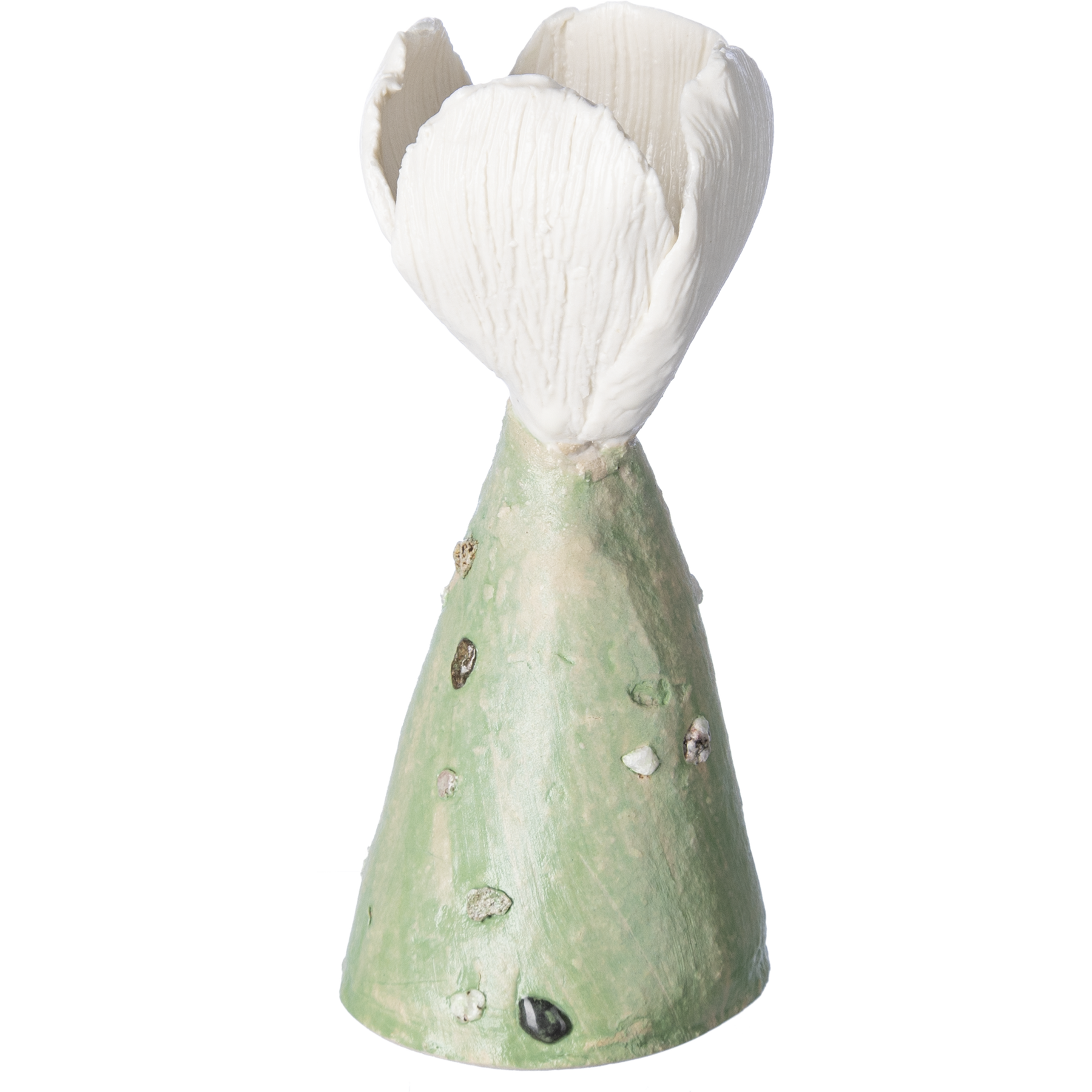 Valkoisen Tulppaani-keramiikkaveistoksen korkeus on 12 cm. Valmistettu käsin Suomessa, Posiolla.