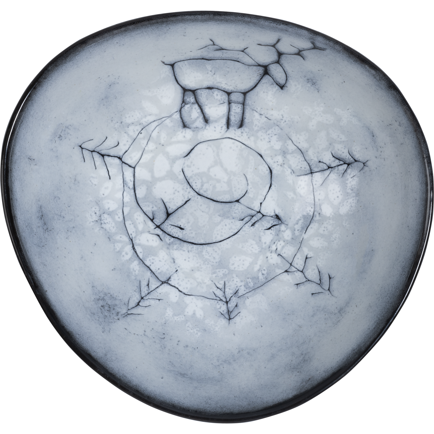 Pohjoisen luonnossa tarvitsee harvoin kulkea yksin. Useimmiten puiden takaa kurkkii tuttu harmaa sarvipää. Anu Pentik maalasi nämä uteliaat kanssakulkijat keramiikkaan. Porojen tapaan kaunis ja kestävä astia kulkee mukanasi vuodesta ja vuosikymmenestä toiseen. Syvä Tunturiretki Talvi Studio kolmiolautanen on osa Pentik Studio -mallistoa, jonka kaikki keramiikka-astiat valmistetaan Posion keramiikkatehtaallamme pieninä sarjoina ja koristellaan käsityönä.