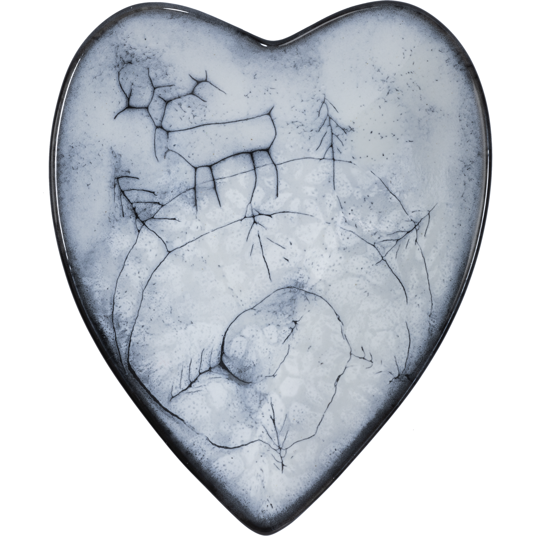Pohjoisen luonnossa tarvitsee harvoin kulkea yksin. Useimmiten puiden takaa kurkkii tuttu harmaa sarvipää. Anu Pentik maalasi nämä uteliaat kanssakulkijat keramiikkaan. Porojen tapaan kaunis ja kestävä astia kulkee mukanasi vuodesta ja vuosikymmenestä toiseen. Tunturiretki Talvi Studio-sydänmalja on osa Pentik Studio -mallistoa, jonka kaikki keramiikka-astiat valmistetaan Posion keramiikkatehtaallamme pieninä sarjoina ja koristellaan käsityönä.