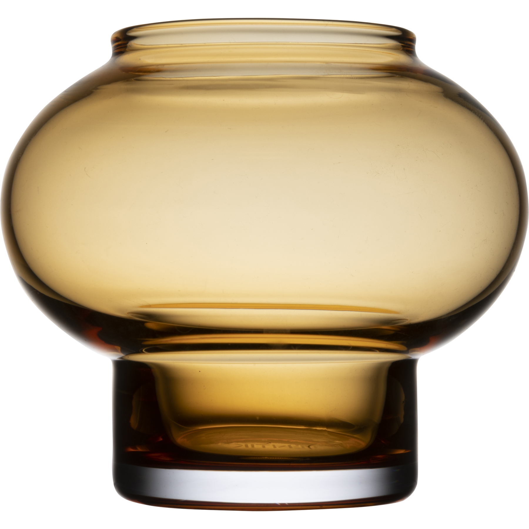 Pieneen, pyöreälinjaiseen Tyyni-kynttilälasiin voi laittaa lämpökynttilän tai pienen kukan kauniiksi yksityiskohdaksi sisustukseen. Pyöreälinjainen design-kynttilälasi on ajaton sisustuselementti sellaisenaan tai osana eri sisustusesineistä koottuja sommitelmia. Se on myös loistava lahja. Tummankeltainen kynttilälasi on kooltaan 9x10 cm ja se on suupuhallettua lasia. Käsinpesu.